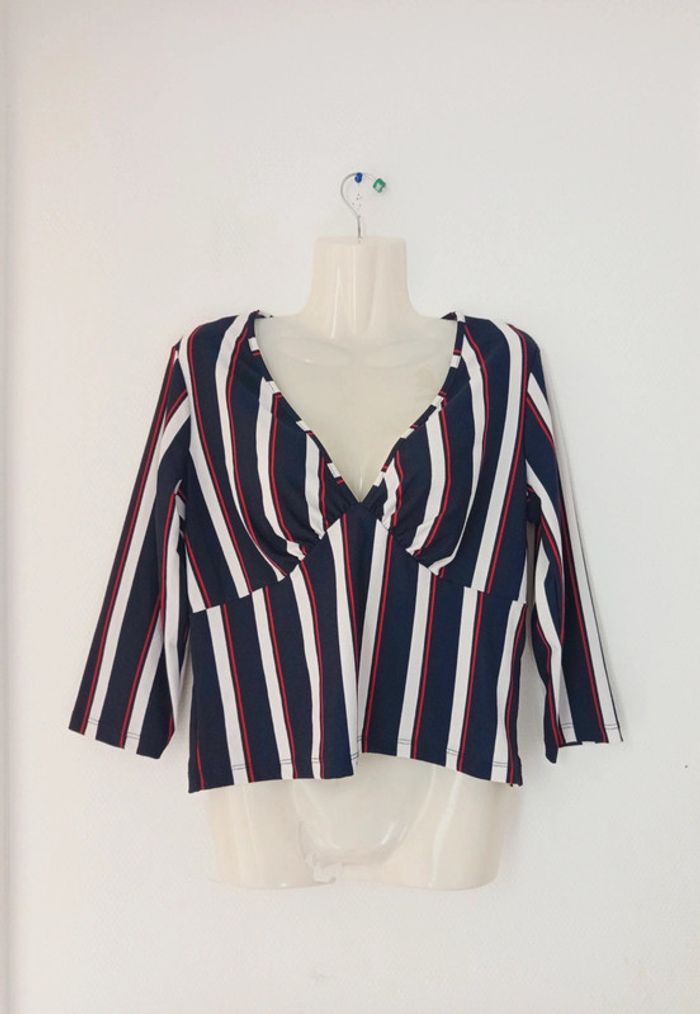 Blouse chic rayée manches longues col V ( décolleté) femme w - photo numéro 4