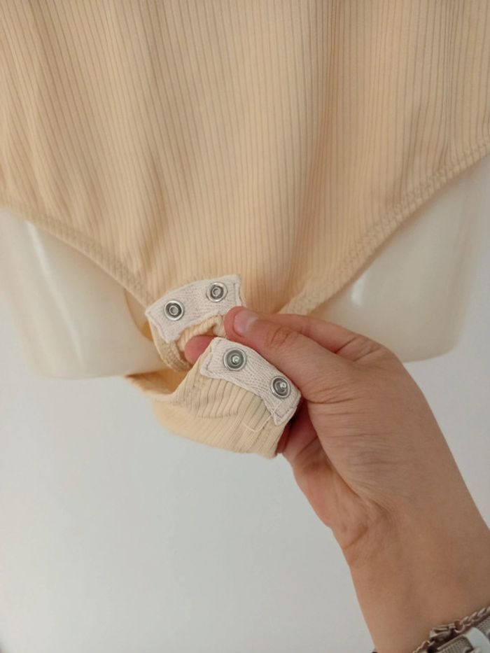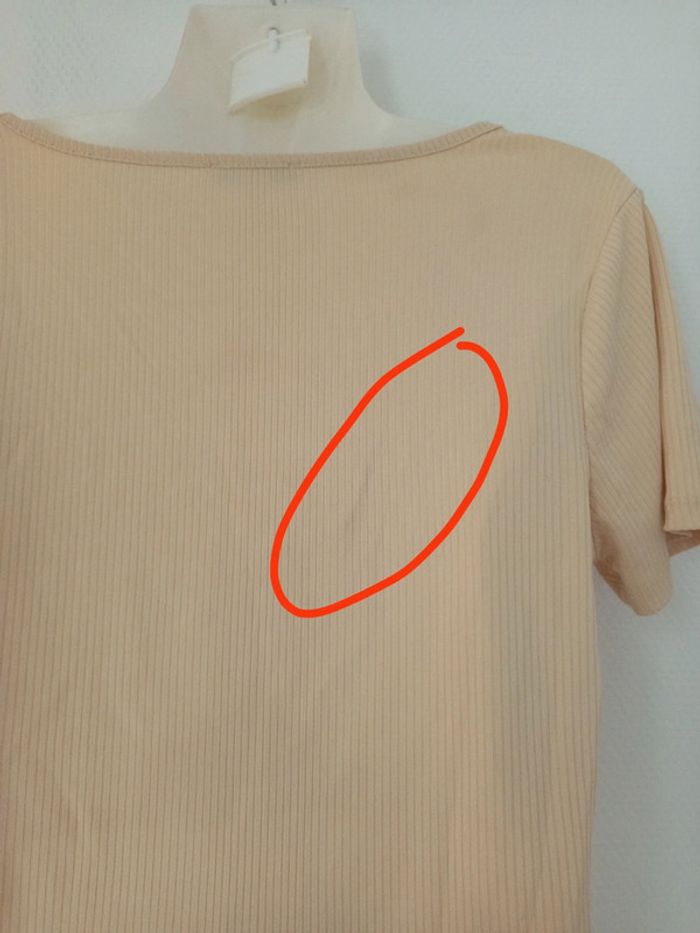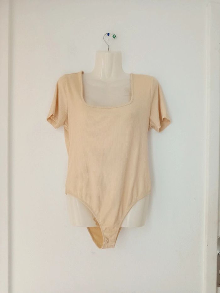✅bon état (une trace au dos voir photo) ✅Ferme avec pression ✅Taille : 40 (L) ✅Couleur. : beige/orange ✅Marque : Jennyfer #femmeT40allycia-levesque #bodies #bodie #bodiemanchescourtes #bodiecouleurchair #bodiebasic