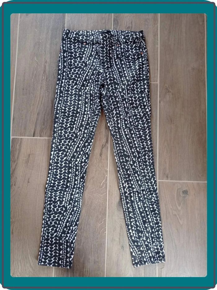 Pantalon noir et blanc motif cœur. De la marque « H&M ». Taille 36. Bon état. Composition : 72% coton 25% polyester 3% élasthanne N’hésitez pas à regrouper vos achats pour optimiser les frais de ports. #vetementfemme36mykonoa C.