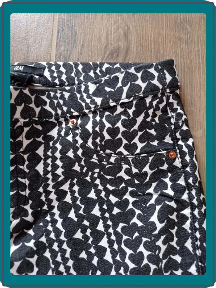 Pantalon noir et blanc motif cœur H&M taille 36 bon état - photo numéro 1