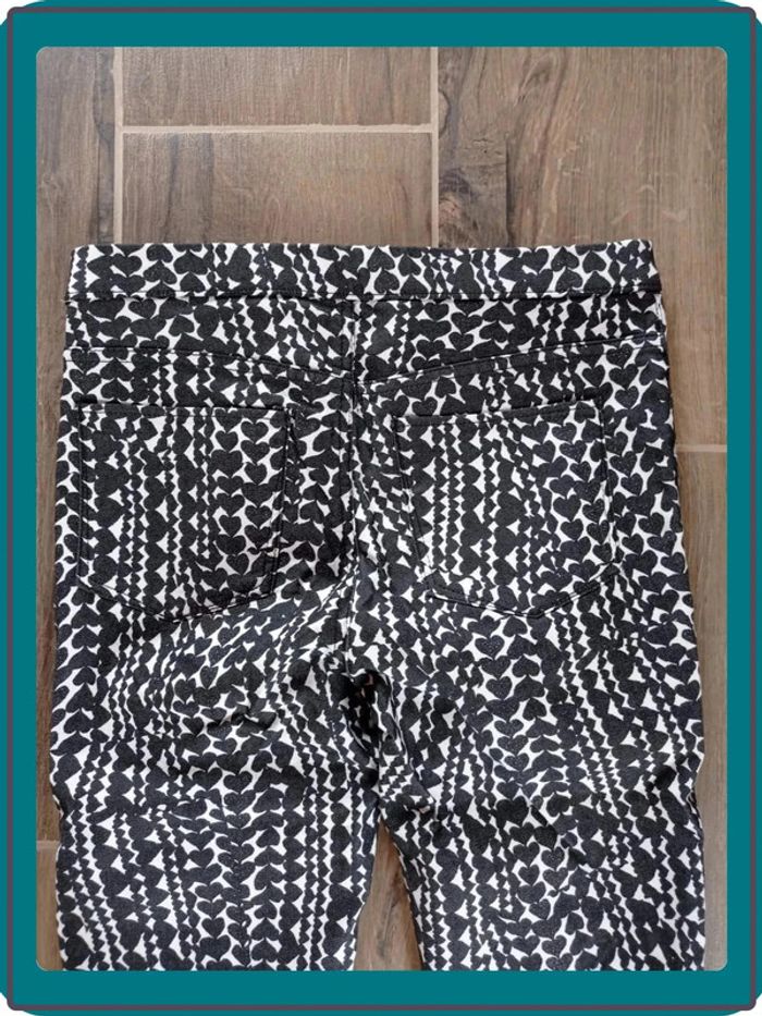 Pantalon noir et blanc motif cœur H&M taille 36 bon état - photo numéro 4