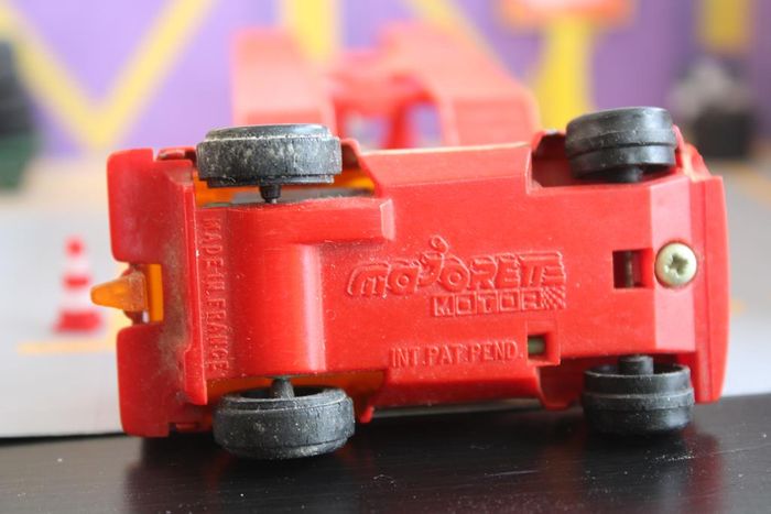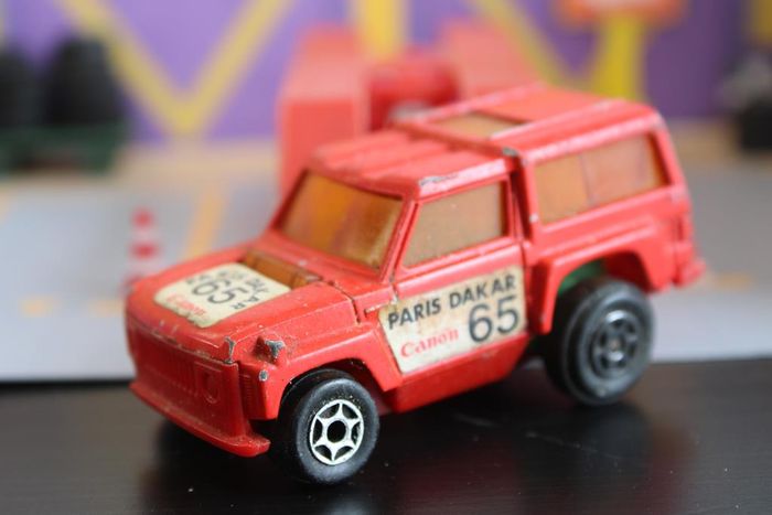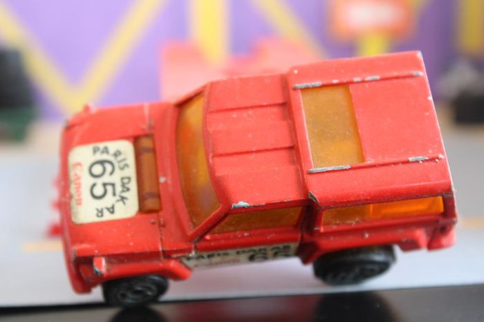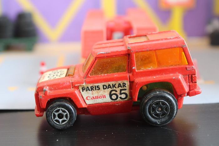 Marque : Range Rover Série : Motors Echelle : environ 1:64/7cm Couleur : Rouge, vitrage teinté orange et stickers sponsor Voiture miniature en bon état. Les axes de roues ne sont pas tordus, vitrage intact. Le bandage caoutchouc des roues arrières est présent et en bon état Moteur rétro friction fonctionnel. Les stickers ont encore un bel aspect Quelques manques de peinture Réponds avec plaisir aux demandes d'informations complémentairre Réponse rapide envoi soigné dans les meilleurs délais