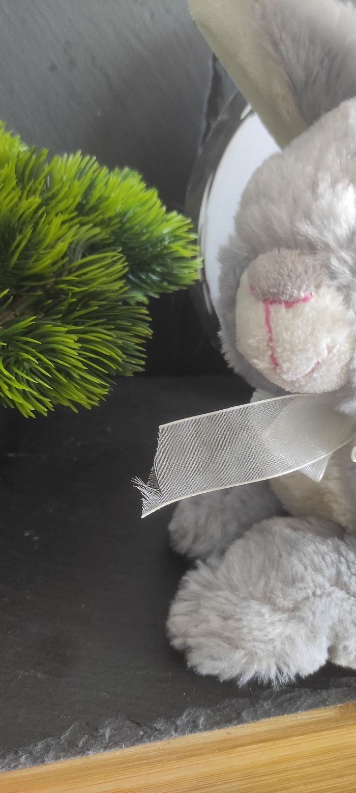 peluche doudou lapin gris blanc noeud satin couché toys global ltd doux - photo numéro 3