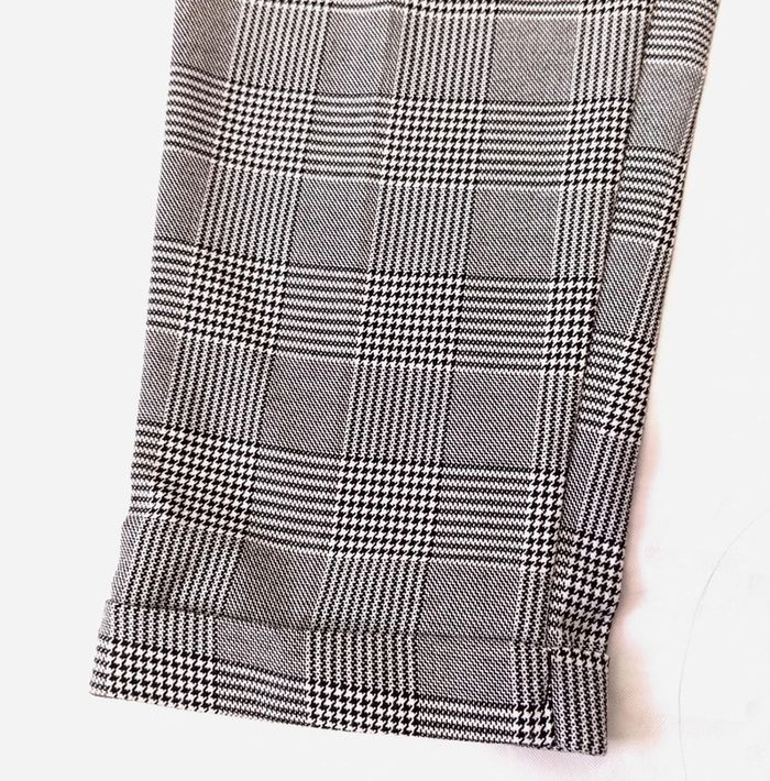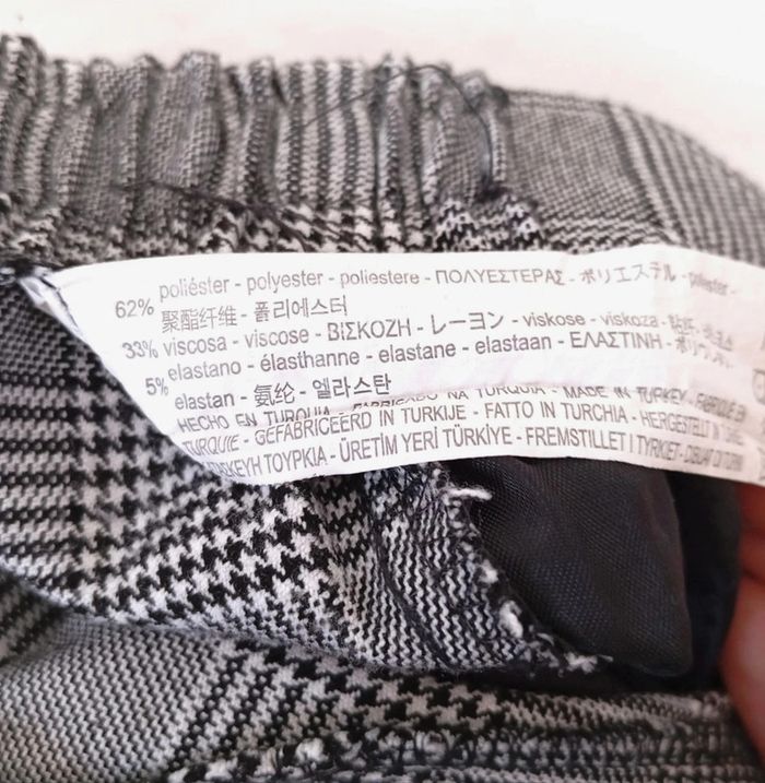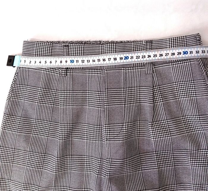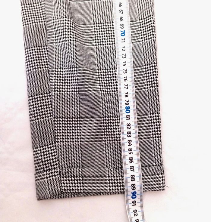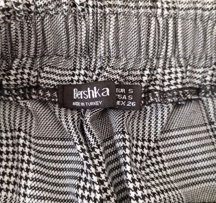 Pantalon pour femme a carreaux Motif Prince de Galles Taille S 62% polyester, 33% viscose, 5% élasthanne. Marque Bershka En bon état Voir les mesures dans les photos
