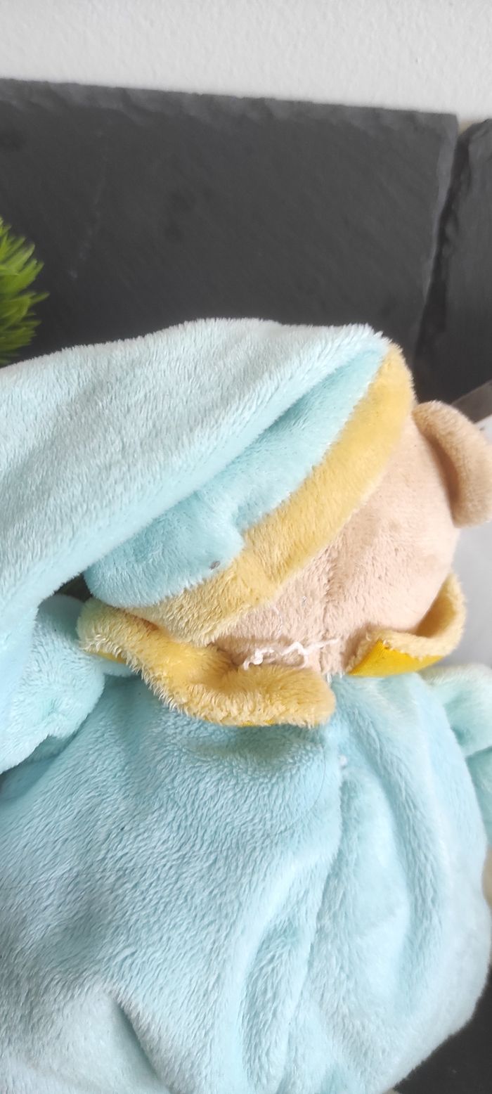Peluche ours bleu turquoise mouchoir BN503 doudou jaune blanc semi plat rond - photo numéro 3