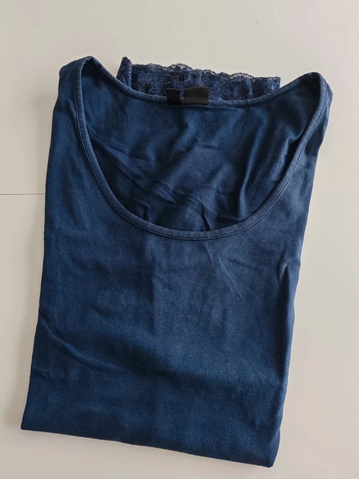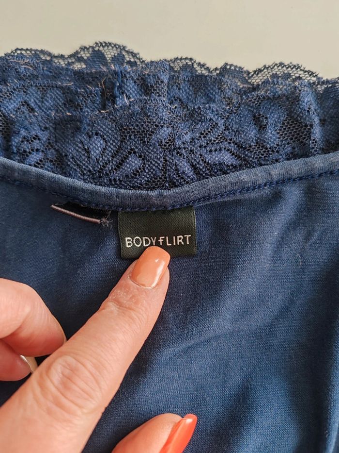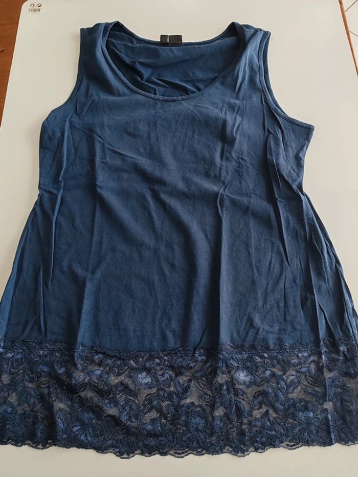 Débardeur marine Long et bas dentelle Très bon état Bodyflirt 46