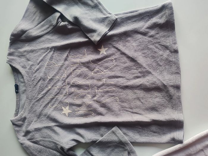 Pyjama 2 pièces Violet et rose Très bon état Le flocage est un peu usé dû aux lavages Kiabi