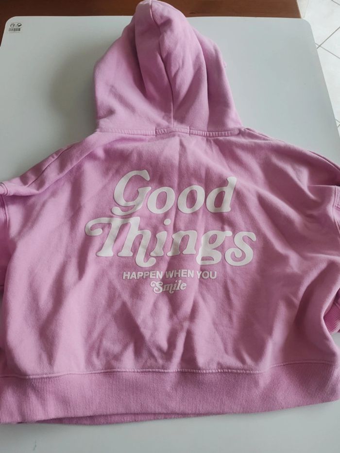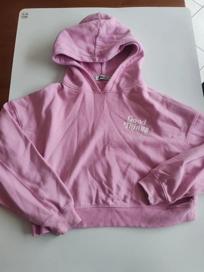 Sweat court femme xs Rose Très bon état sauf tâche voir photo Fb sister