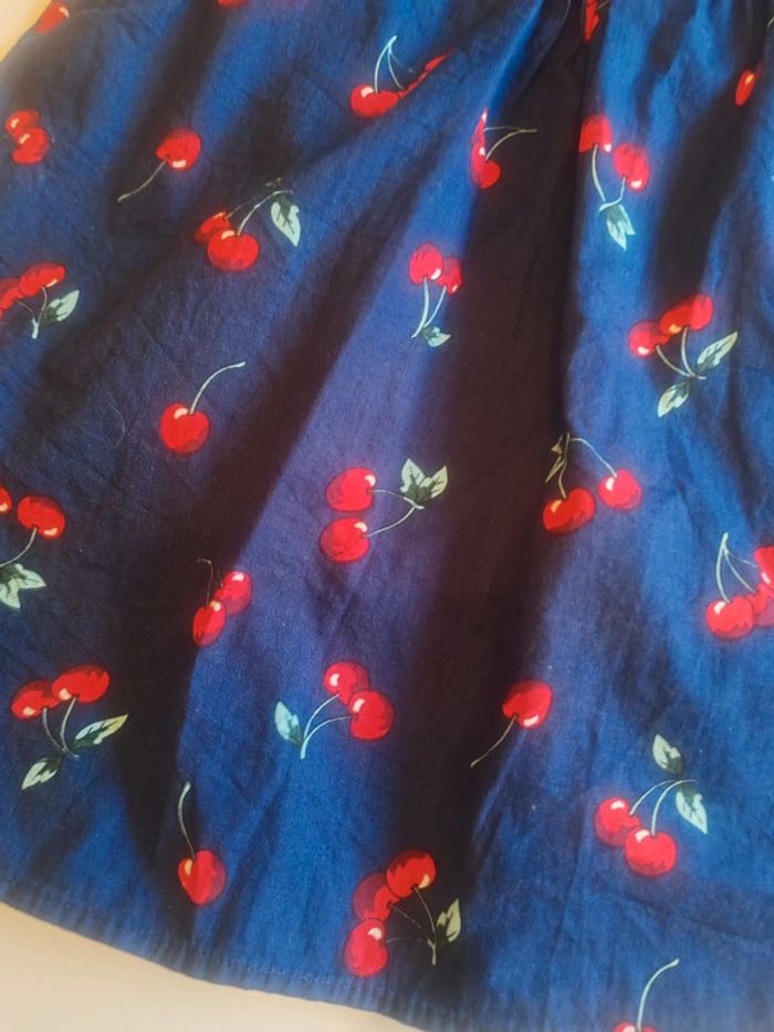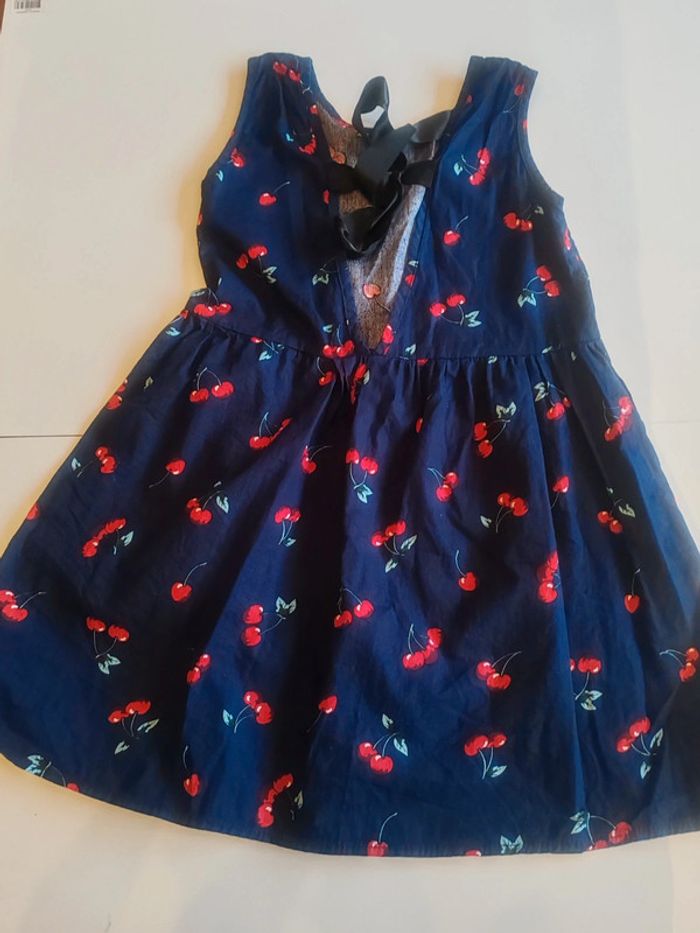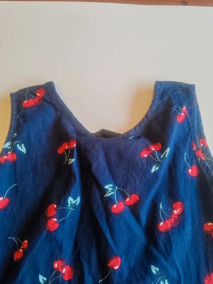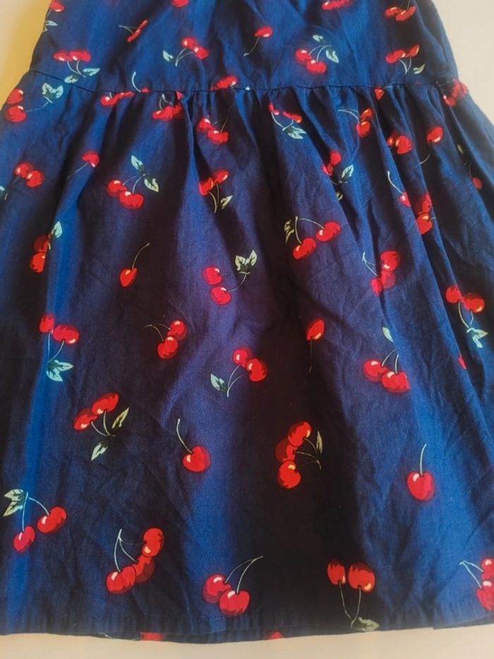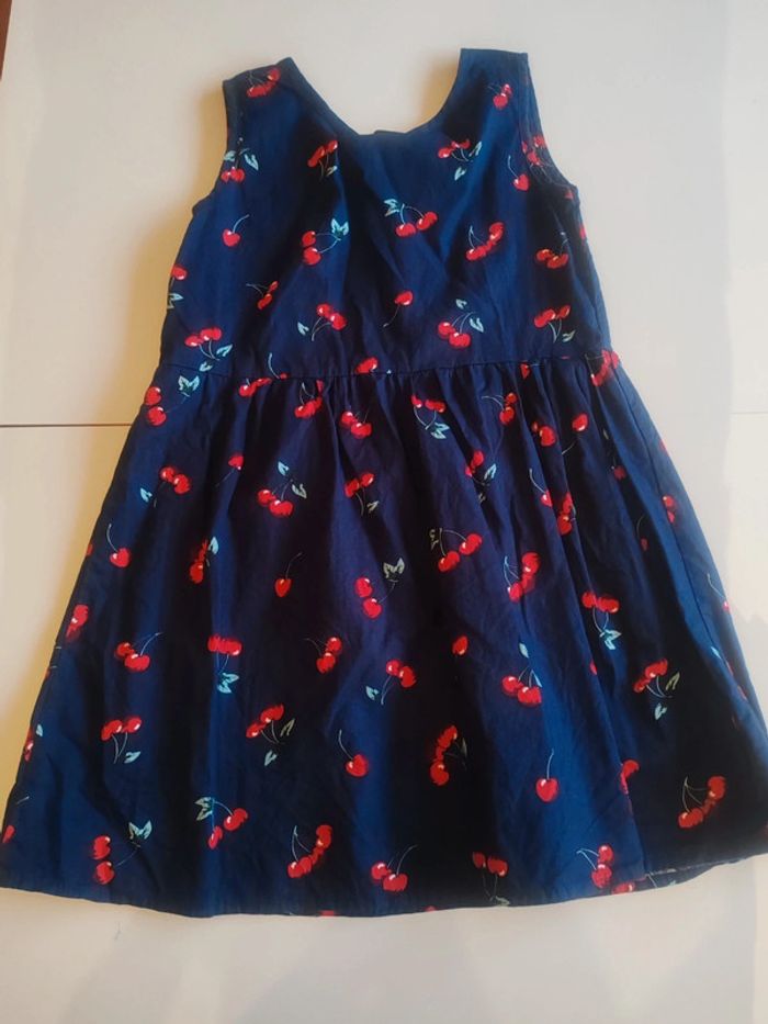 👗 robe légère à nouer dans le cou Très bon état Marine motifs cerises 🍒 Indiqué 130cm taille petit plus 6-7 ans
