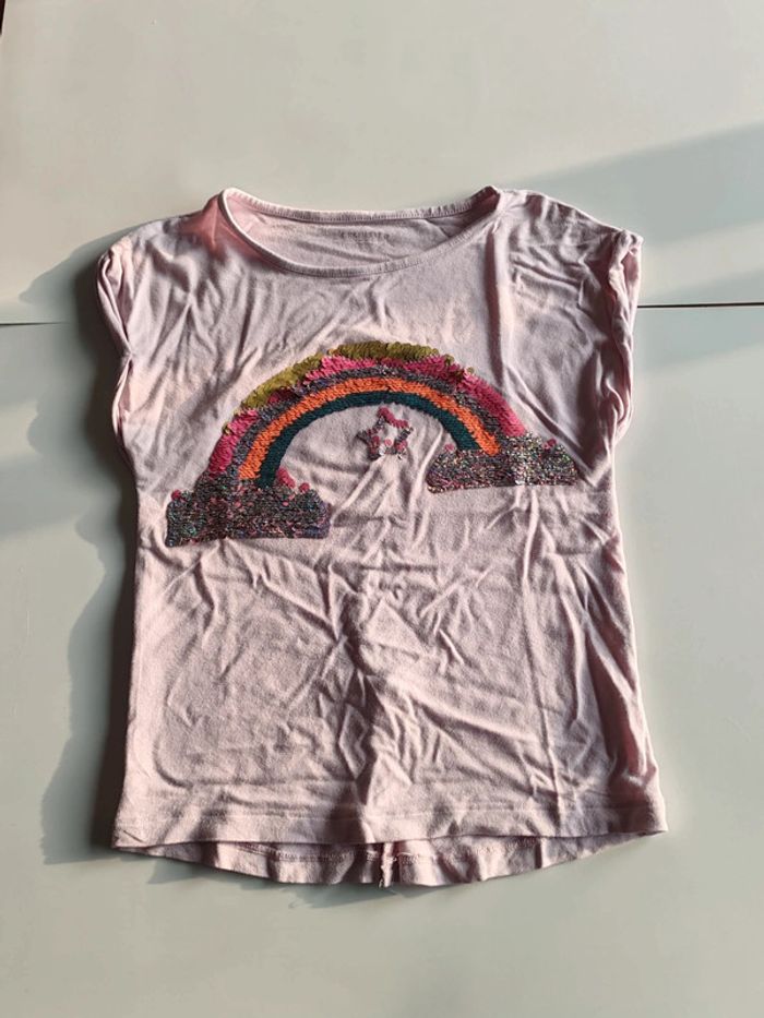Tee-shirt rose Arc en ciel magique à sequins Très bon état 8 ans Orchestra