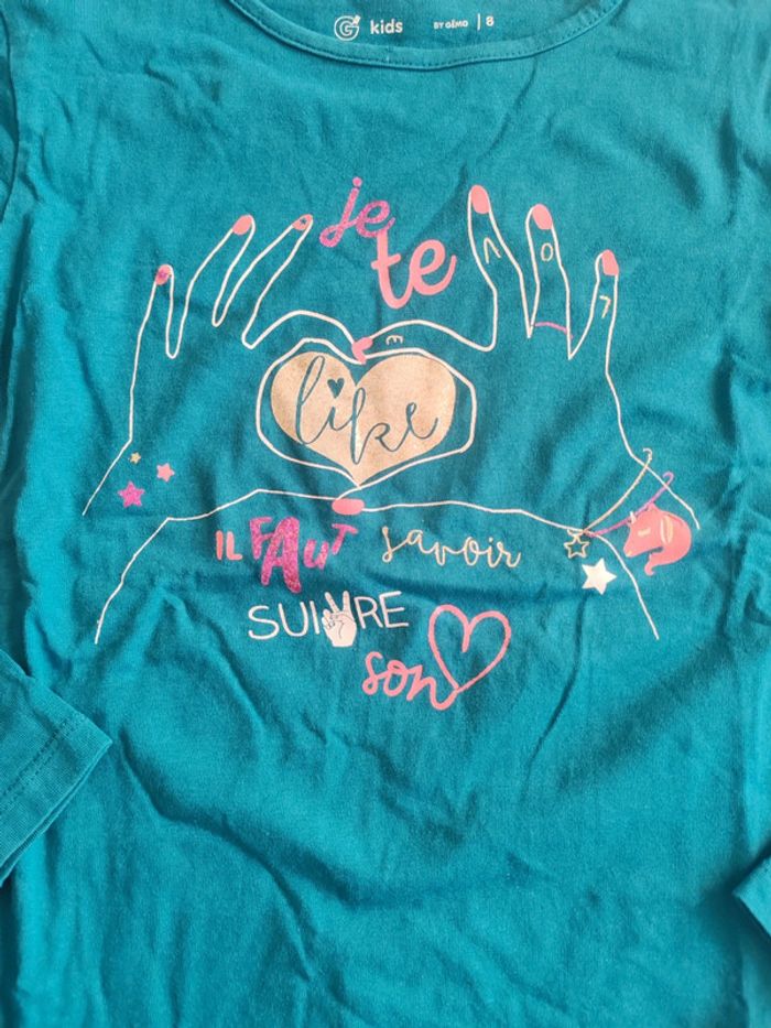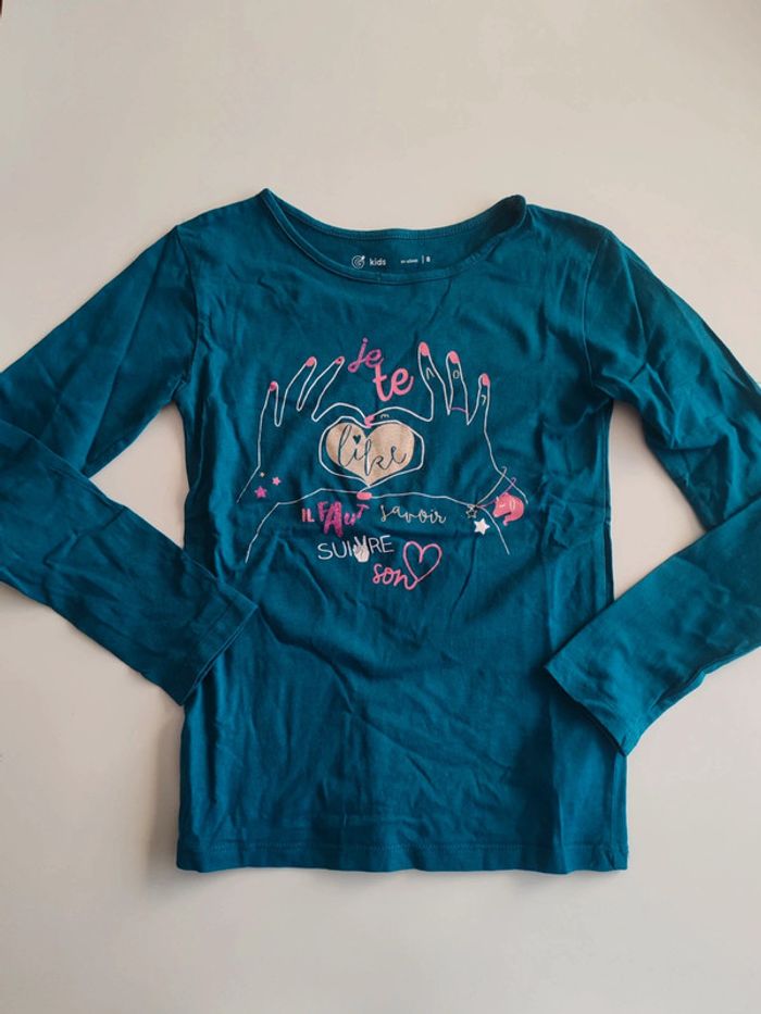 Tee-shirt manches longues Très bon état Bleu vert Gémo kids 8 ans