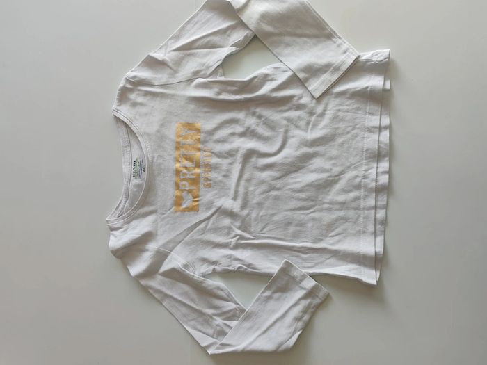 Tee-shirt manche longue Blanc et doré Très bon état 4 ans Kiabi