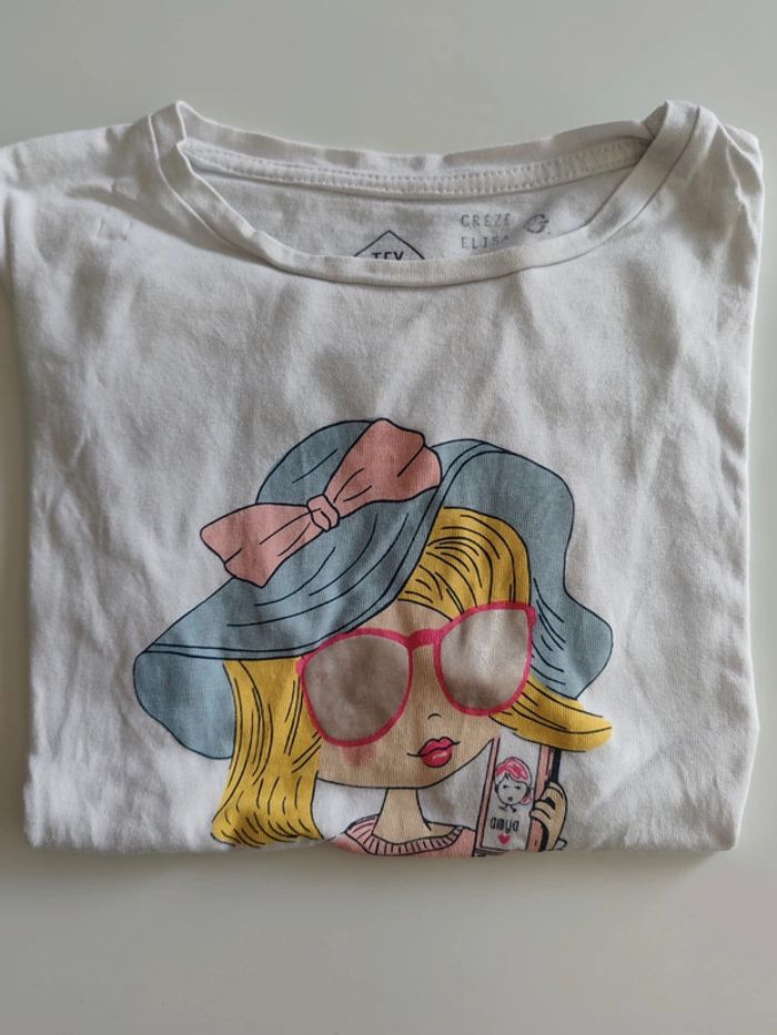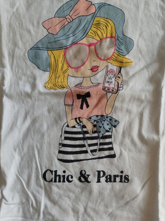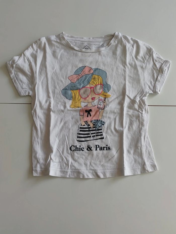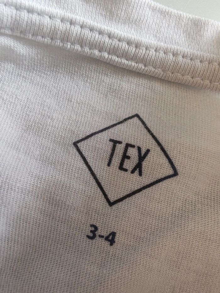 Tee-shirt manche courte Blanc Très bon état Nom de l'enfant inscrit avec tampon spécial textile s'effacera avec le lavage 4 ans Kiabi
