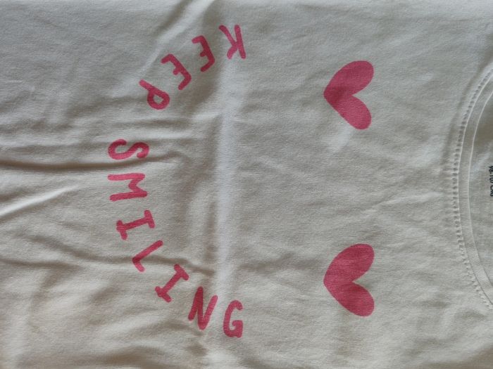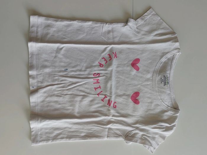 Tee-shirt manche courte Blanc et rose bon état malgré 2 traces de crayon voir photo 4 ans Kiabi