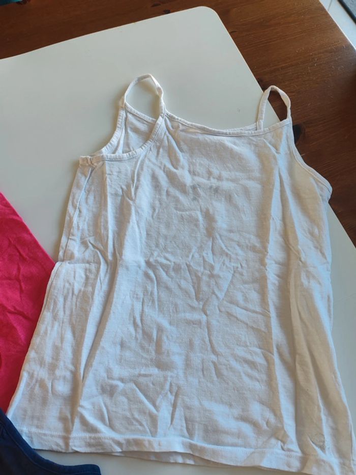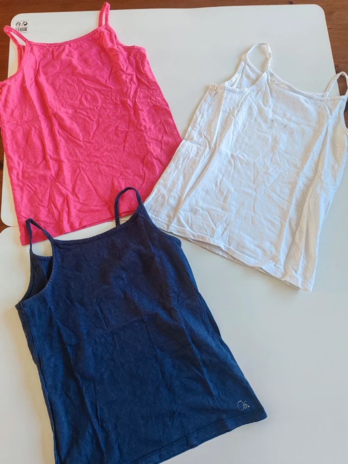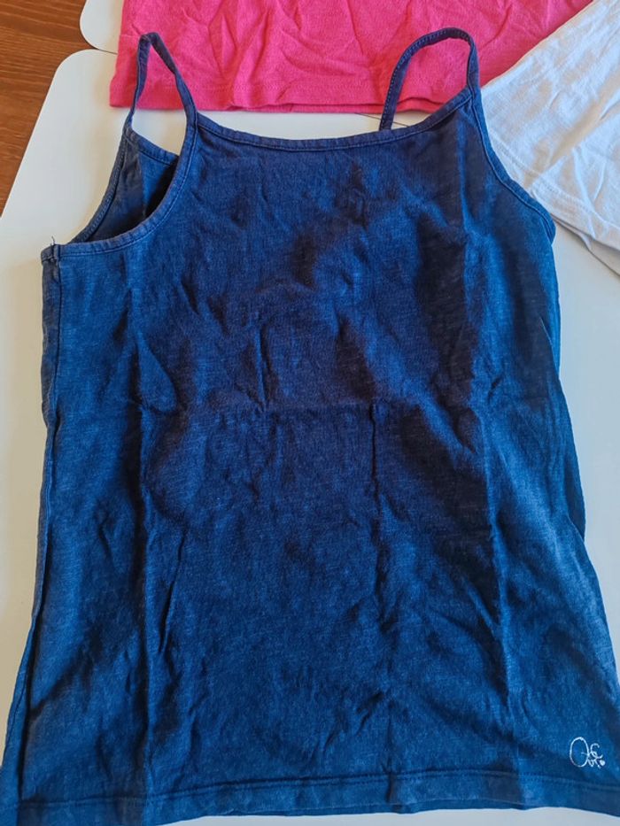 Lot de 3 débardeurs fille 10 ans Marine, fushia et blanc Cf photo le blanc a des petites taches Très bon état Orchestra