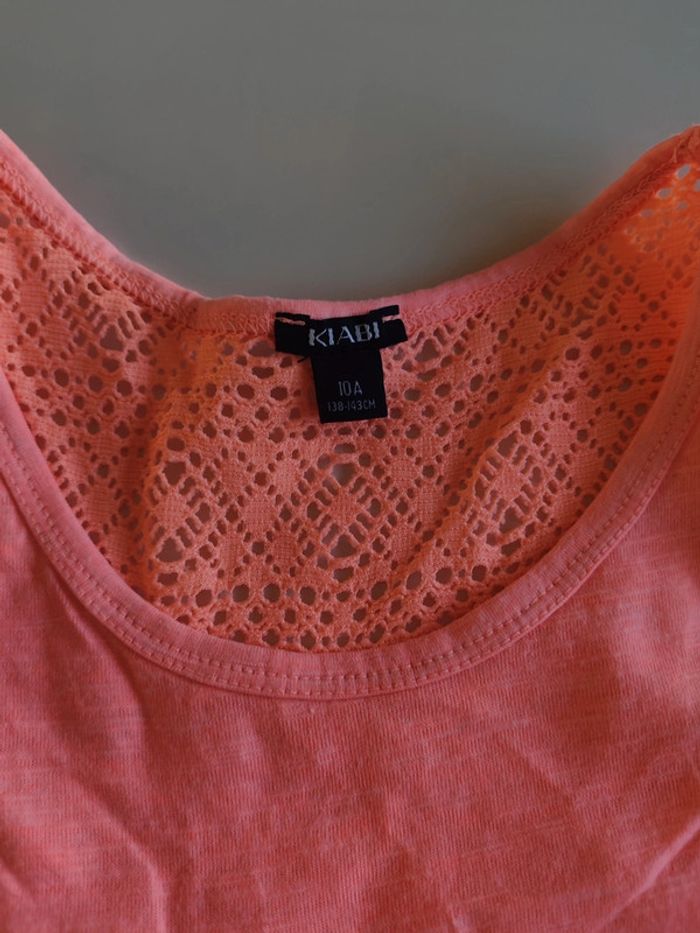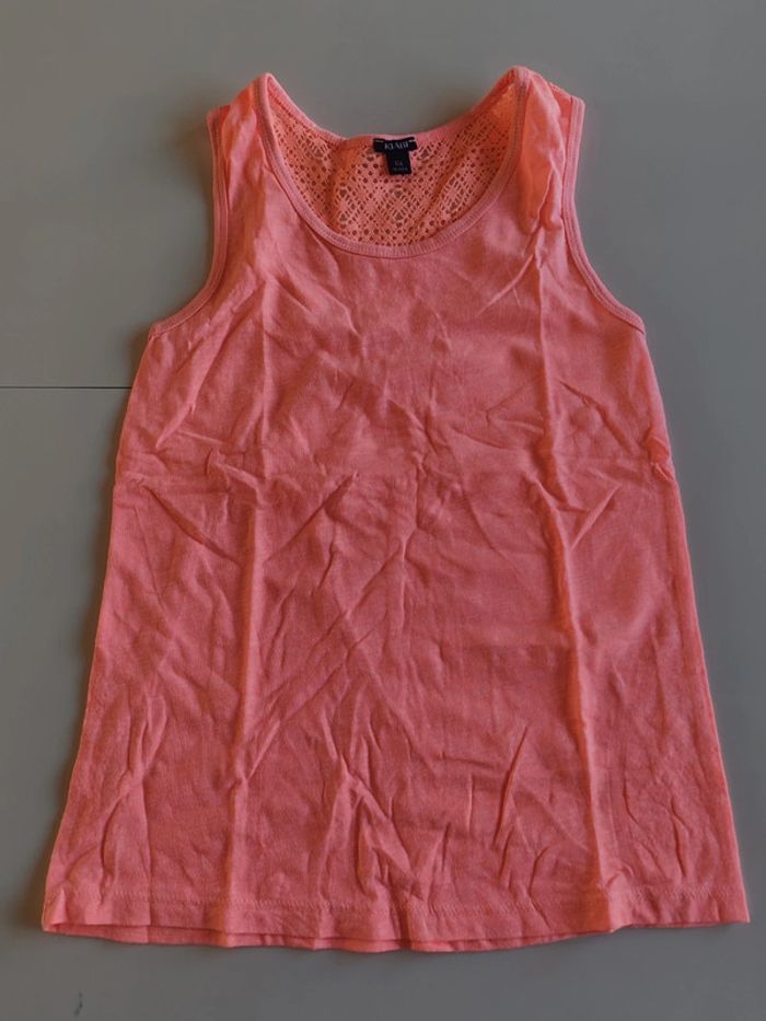 Tee-shirt sans manches Rose orange fluo 100% coton Très bon état Kiabi 10 ans