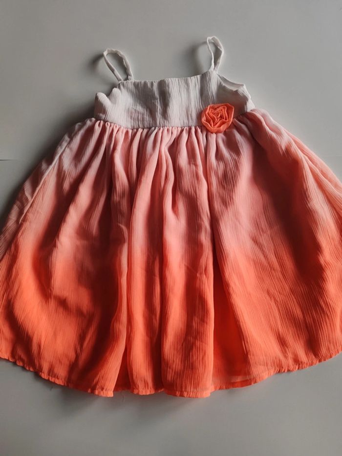 Robe à bretelles Boutons dans le dos Très bon état Dégradé Orange corail blanc 3 ans Kid kanai