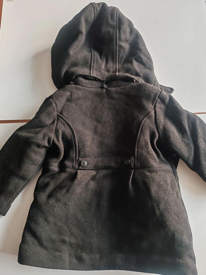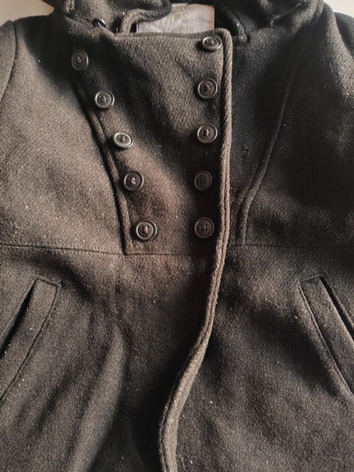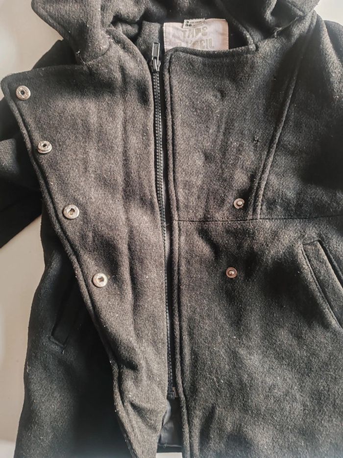 Manteau noir Pressions et fermeture Manque 1 pression voir photo Capuche amovible à boutons Noir Laine polyester acrylique polyamide Tape à l'oeil 3 ans