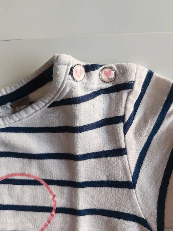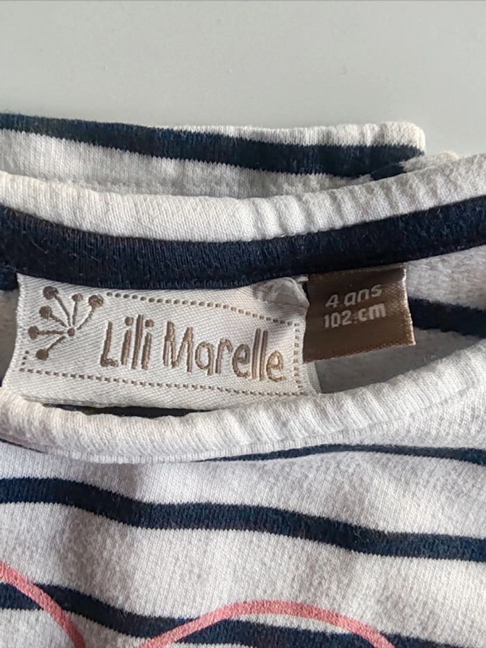 Tee-shirt manches courtes Blanc et maeine Très bon état Lili Marelle 4 ans