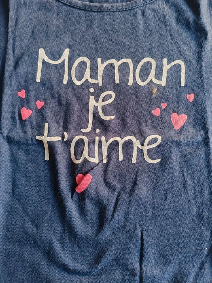 Tee-shirt manches courtes Marine et blanc Très bon état Petite tâche voir photo Kiabi 3 ans