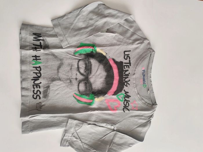 Tee-shirt manche longue Gris Très bon état Pickouic 4 ans