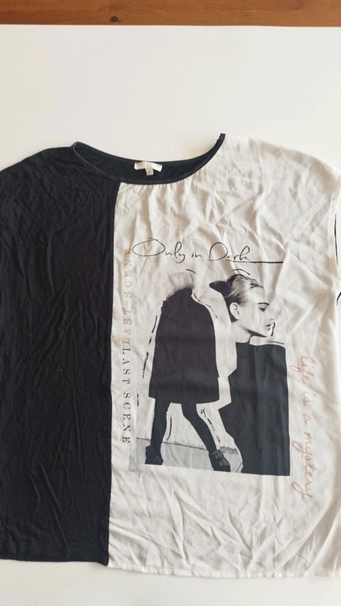 Tee-shirt blanc cassé et noir Bi matière Taille L Grain de malice Très bon état