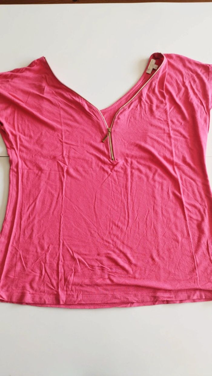 Tee-shirt rose fermeture dorée Taille L Très bon etat Coton et elasthane Grain de malice