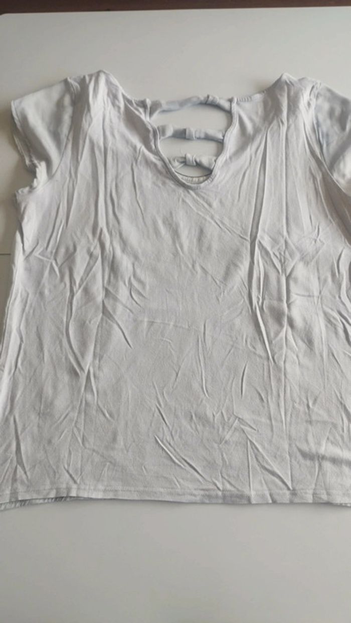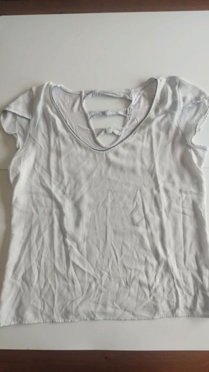Tee-shirt blanc cassé Fluide devant Coton derriere Voir photo petit point de couture à prévoir sur le noeud du haut Taille 44 Mim