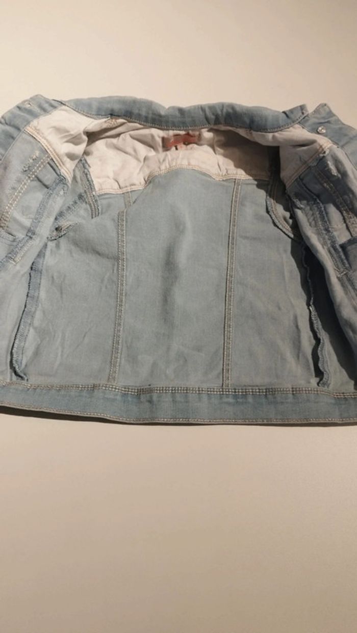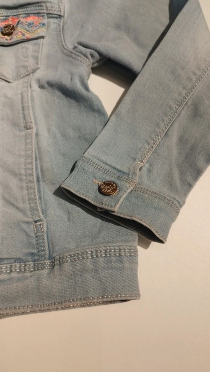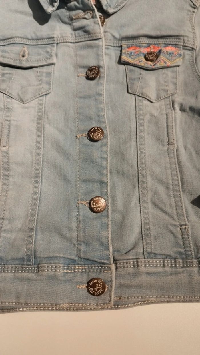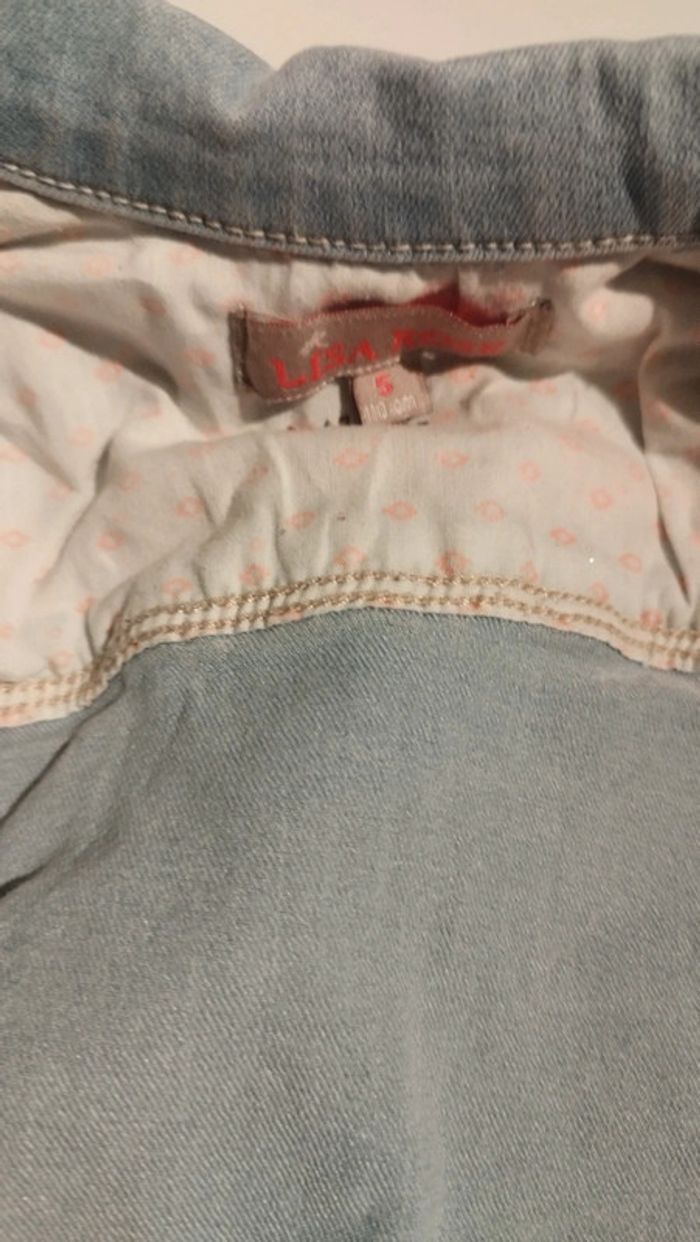 Veste en jean légère Bleu clair Très bon état Nom de l'enfant mais partira aux lavages Lisa rose