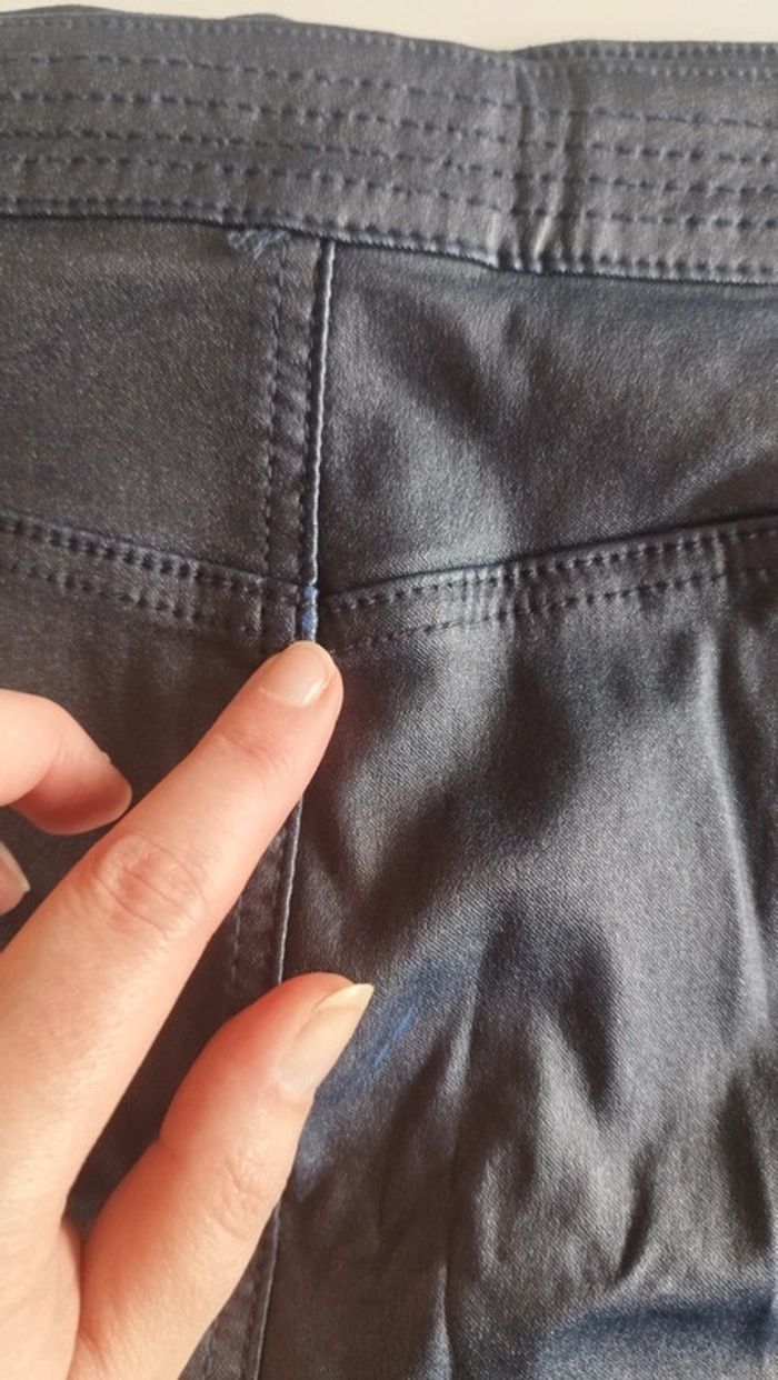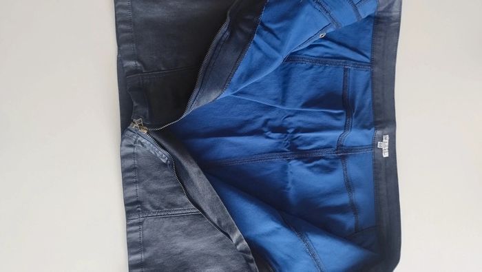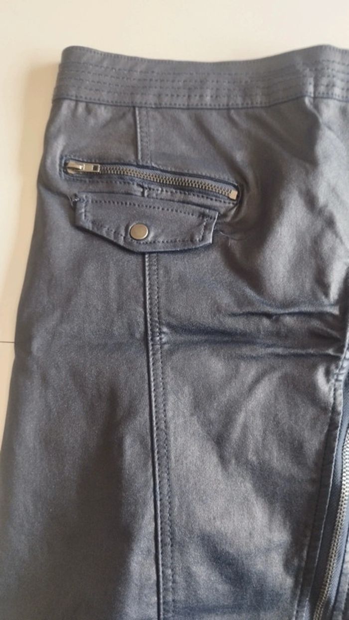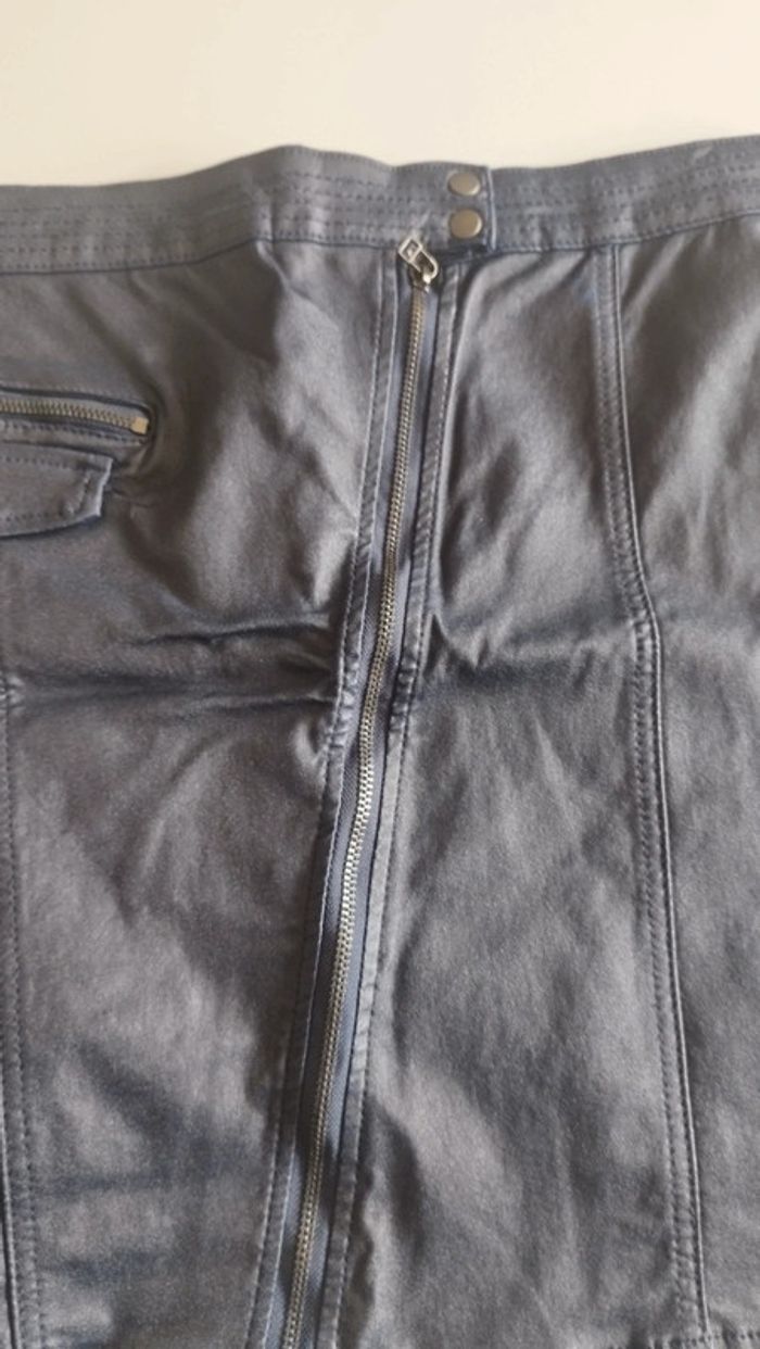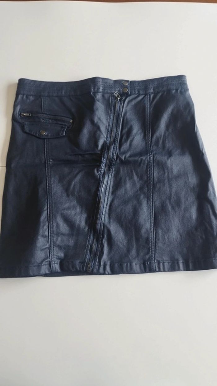 Jupe marine effet simili cuir Fermeture éclaire devant Petit accroc voir photo Taille 44 Longueur 44 U collection