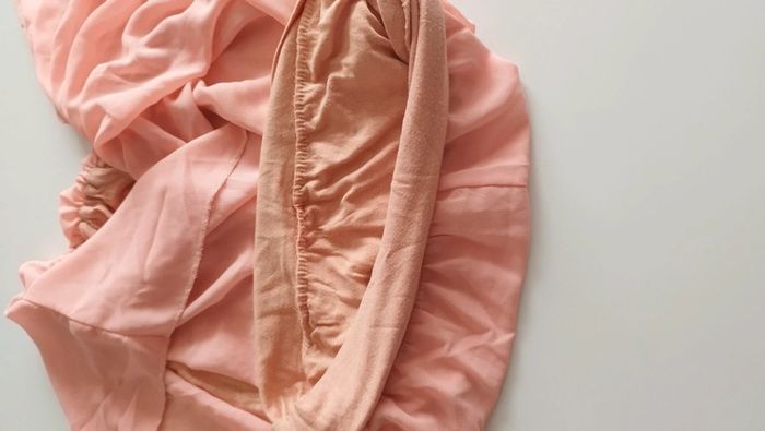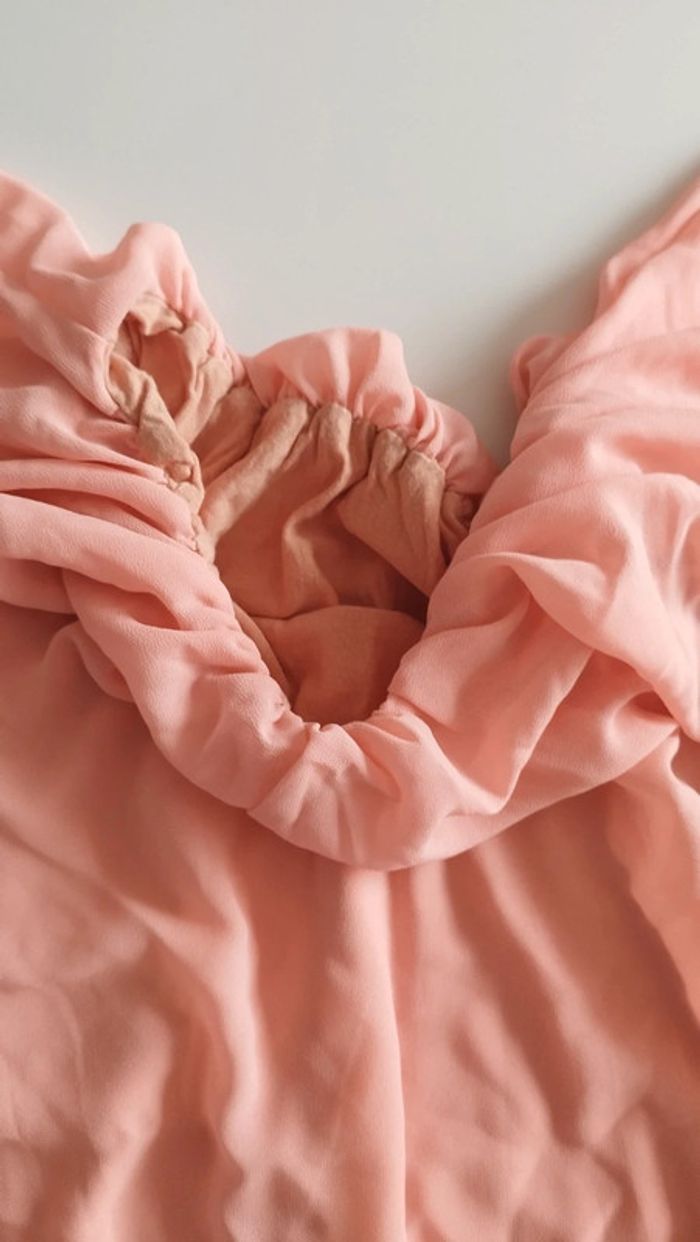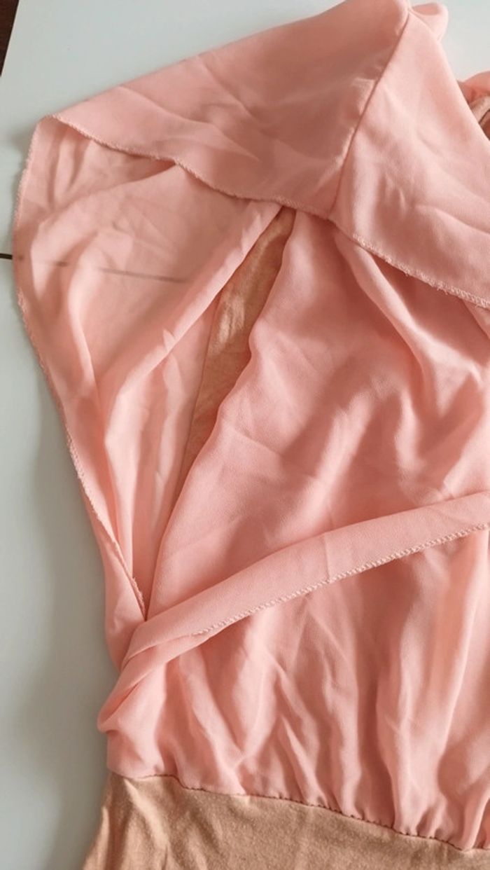 Tee-shirt manche volante Col rond Longueur 56 Matiere fluide mais doublé Peche Taille L