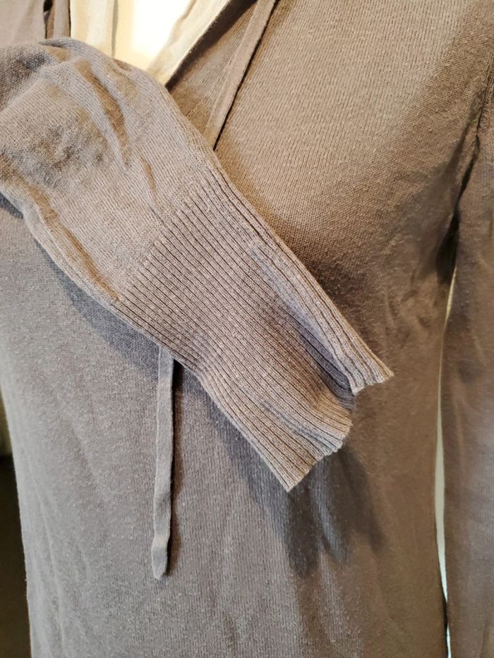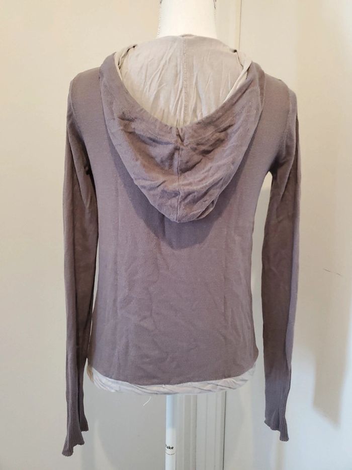 Pull à manches longues avec capuche, gris et gris rosé T.S / IKKS Porté, bon état général, formation de petites bouloches #boulie2318taille36