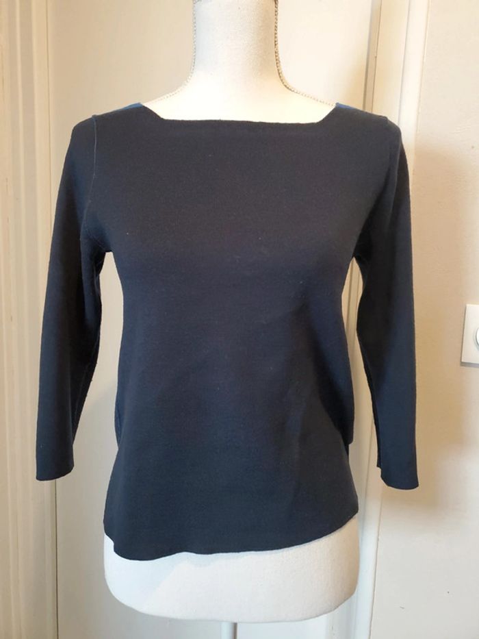 Pull manches ¾, réversible, bleu marine et bleu électrique, pas d'étiquettes T.S Bon état, formation de bouloches Sans marques #boulie2318taille36