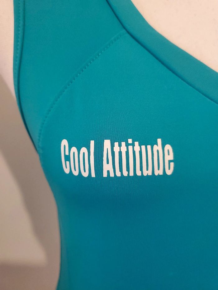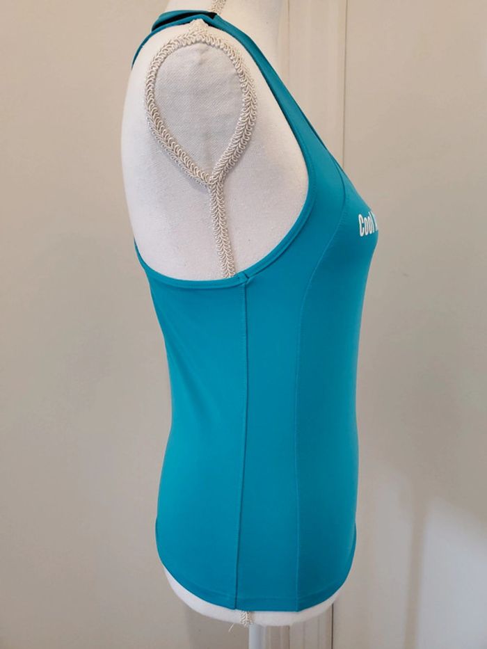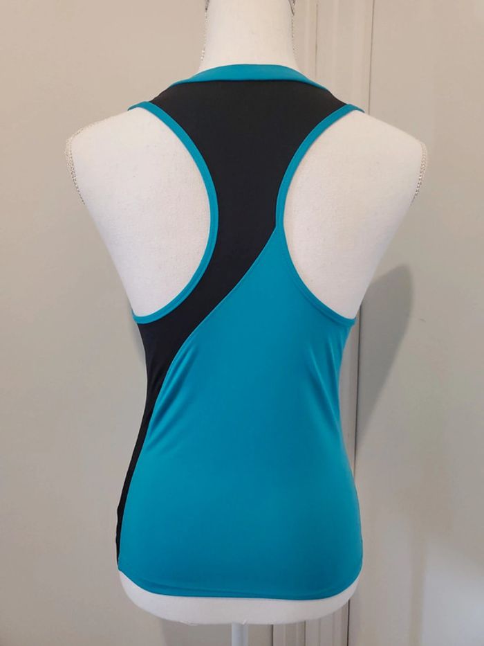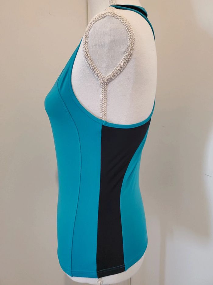 Débardeur turquoise et noir, matière style affaire de sport, étiquettes coupées T.S / Femme Très bon état #boulie2318taille36 #débardeursboulie2318