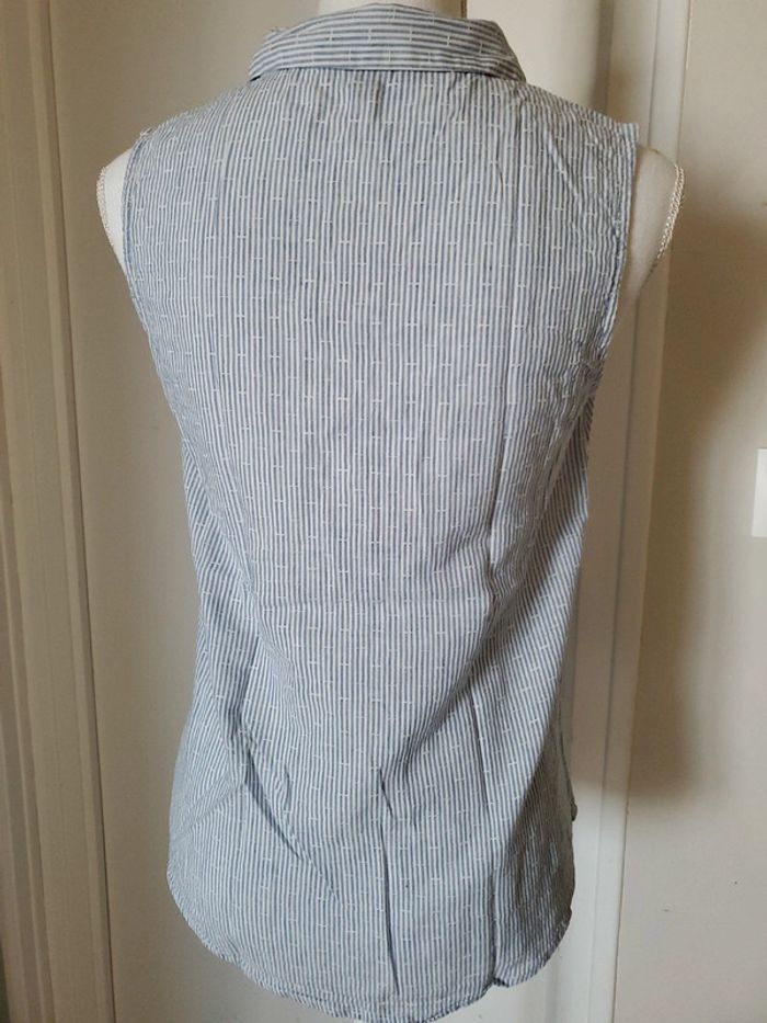 Chemisier sans manche, à rayures bleu clair et blanc T.S / KIABI / femme Très bon état #boulie2318taille36