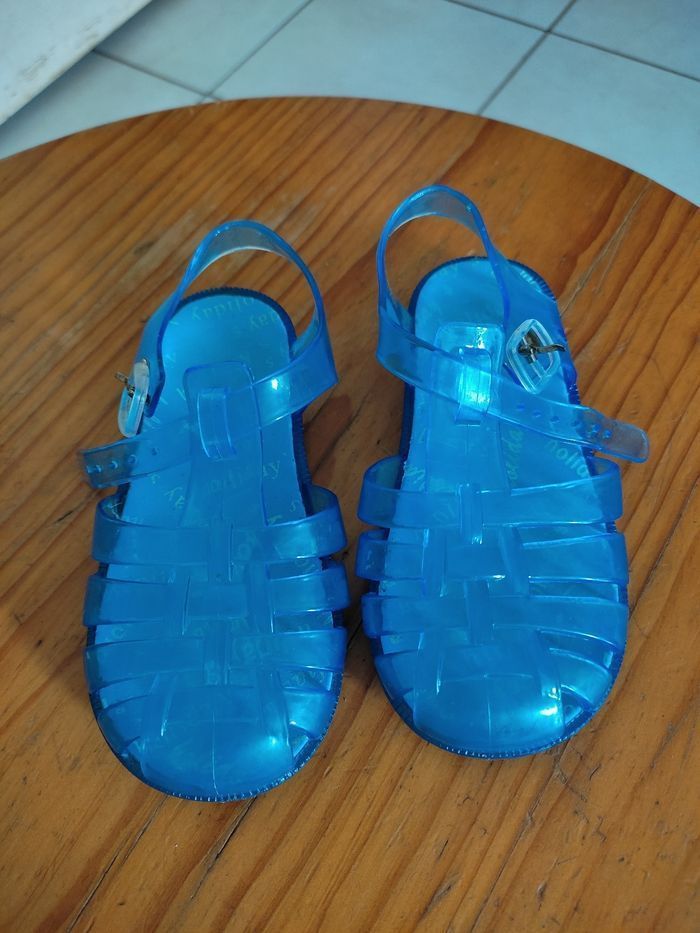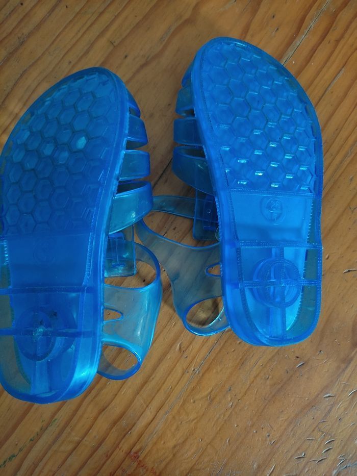 Chaussure pour tremper les pieds (mer,lac...) en plastique bleu .neuves, jamais portée.taille 26/7 .