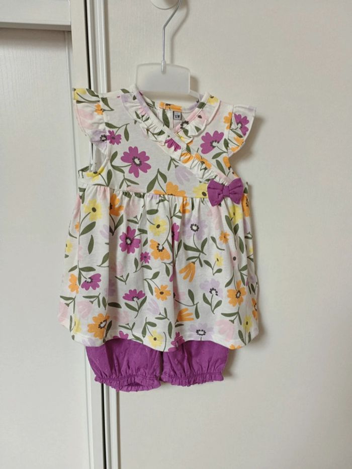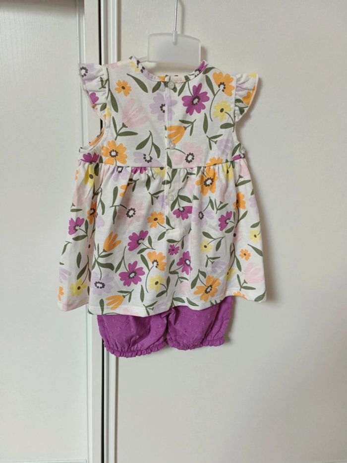 Tee shirt fleurs et pantalon violet 12 mois Neuf