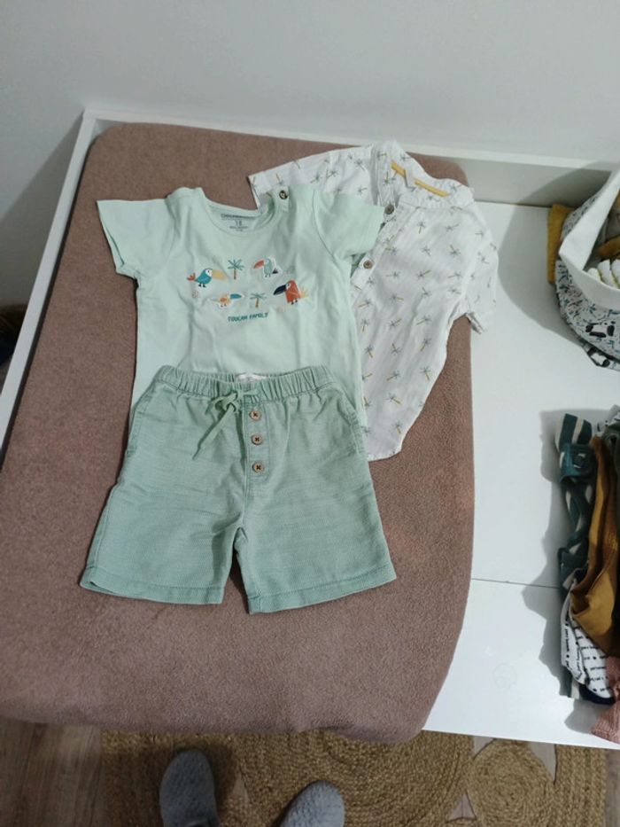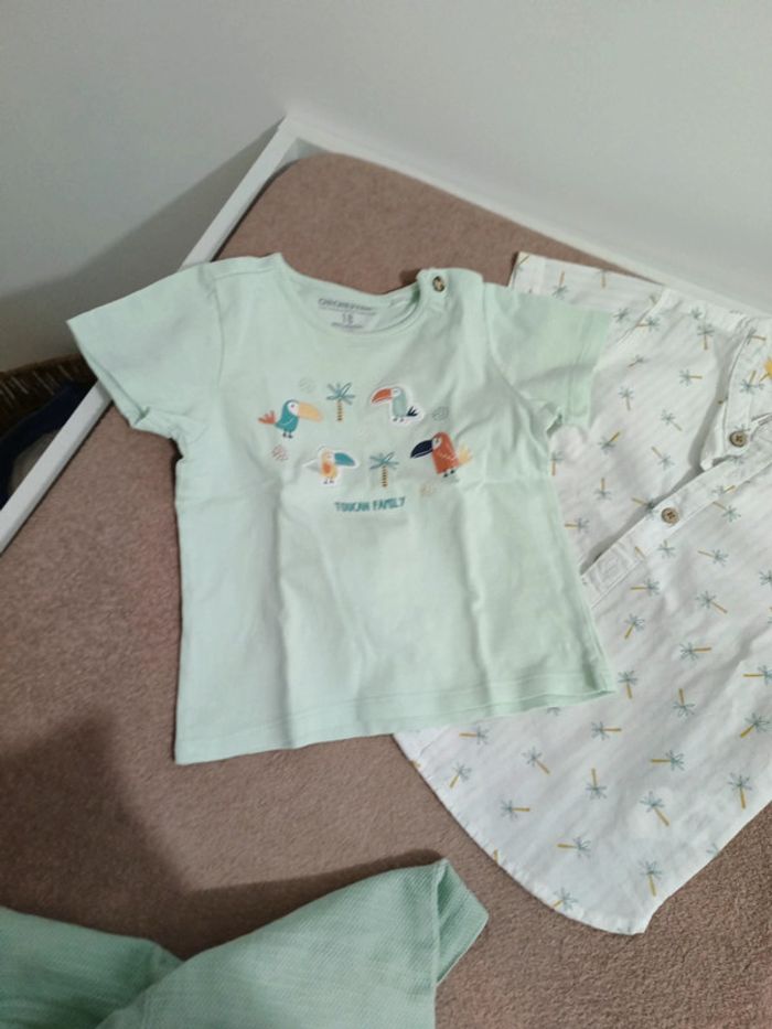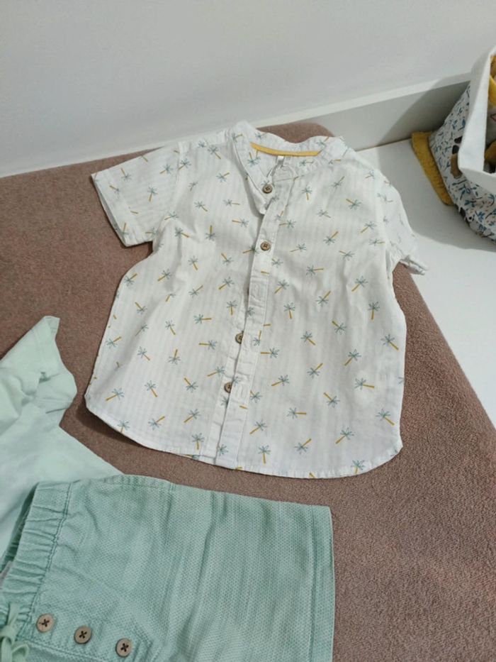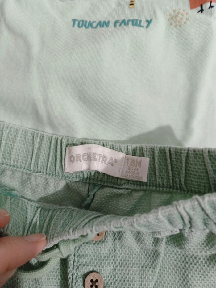Chemise tee shirt et short vert d eau 18 mois Orchestra