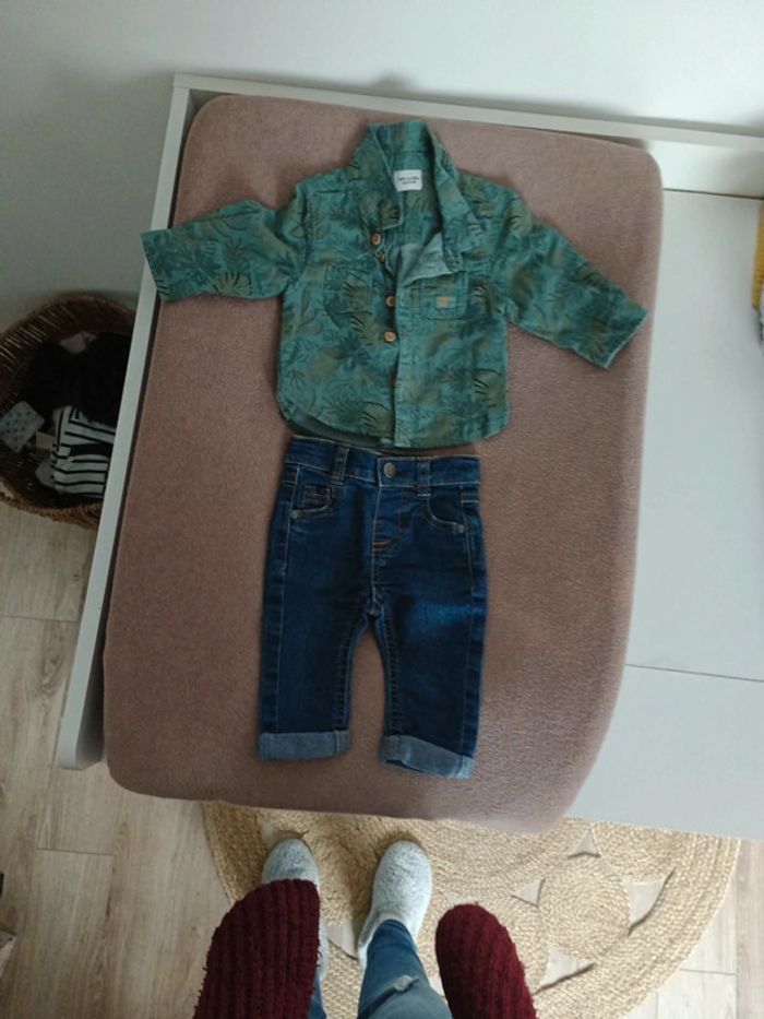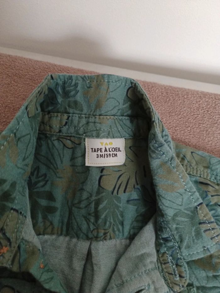 Chemise tropicale verte Jean droit Tape a l oeil 3 mois