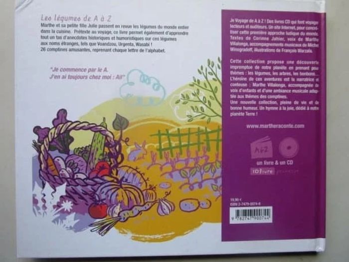 Marthe et sa petite fille Julie passent en revue les légumes du monde entier dans la cuisine. Prétexte au voyage, ce livre permet également d'apprendre tout un tas d'anecdotes historiques et humoristiques sur ces légumes aux noms étranges, tels que Voandzou, Urgenta, Wasabi ! 26 comptines amusantes, reprenant chaque lettre de l'alphabet. Je Voyage de A à Z ! Des livres CD qui font voyager lecteurs et auditeurs. L'héroïne de ces aventures est la narratrice et conteuse : Marthe Villalonga, accompagnée de voix d'enfants et d'une ambiance musicale adaptée aux thèmes des comptines. Une nouvelle collection, pleine de vie et de bonne humeur. Un hymne à la joie, dédié à notre planète Terre ! Editeur : Id Livre 64 pages Dimensions ‏ : ‎ 22 x 19 cm Livre en parfait état Je vends un autre livre de la même collection #phil_peg_jevoyagedeaàz #légumes #voyage #abécédaire #comptines #légume #livrecd