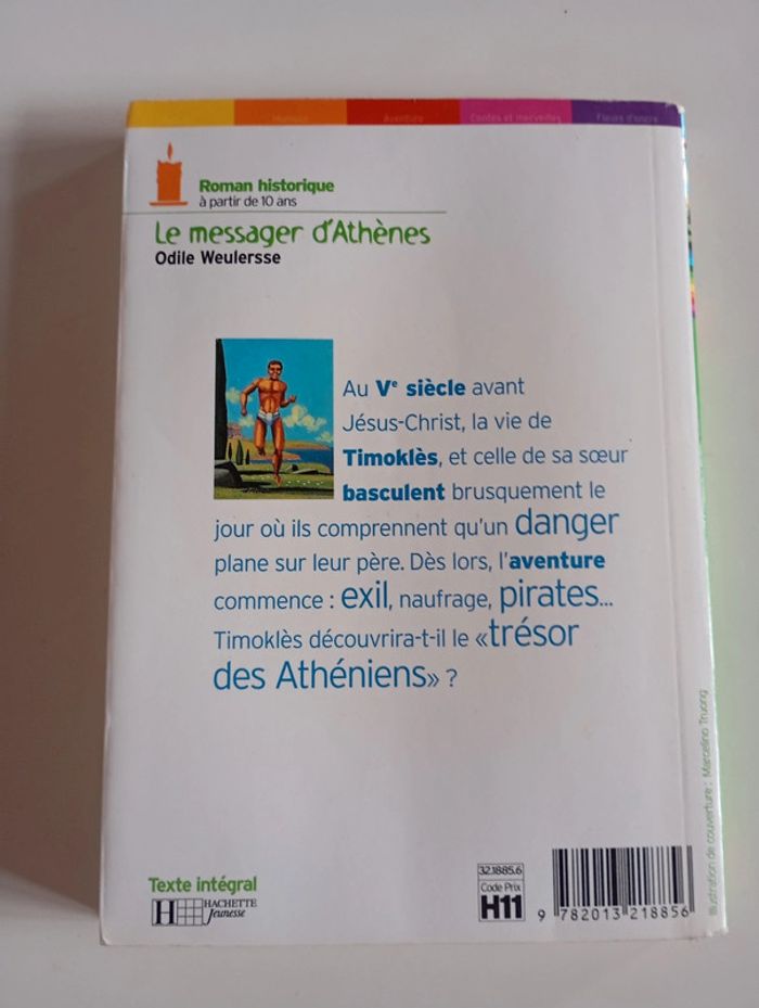 Au Ve siècle avant Jésus-Christ, la vie de Timoklès, et celle de sa sœur basculent brusquement le jour où ils comprennent qu'un danger plane sur leur père. Dès lors, l'aventure commence : exil, naufrage, pirates... Timoklès découvrira-t-il le " trésor des Athéniens " ? Éditeur ‏ : ‎ Livre de Poche Jeunesse 285 pages Âge de lecture ‏ : ‎ 8 - 11 ans Dimensions ‏ : ‎ 12.5 x 1.2 x 18 cm Livre en bon état (Très bon état mais nom sur la tranche, cf dernière photo) Je vends d'autres livres d'Odile Weulersse #phil_peg_weulersse, #phil_peg_romanhistorique #romanhistorique #athènes #grèce #antiquité