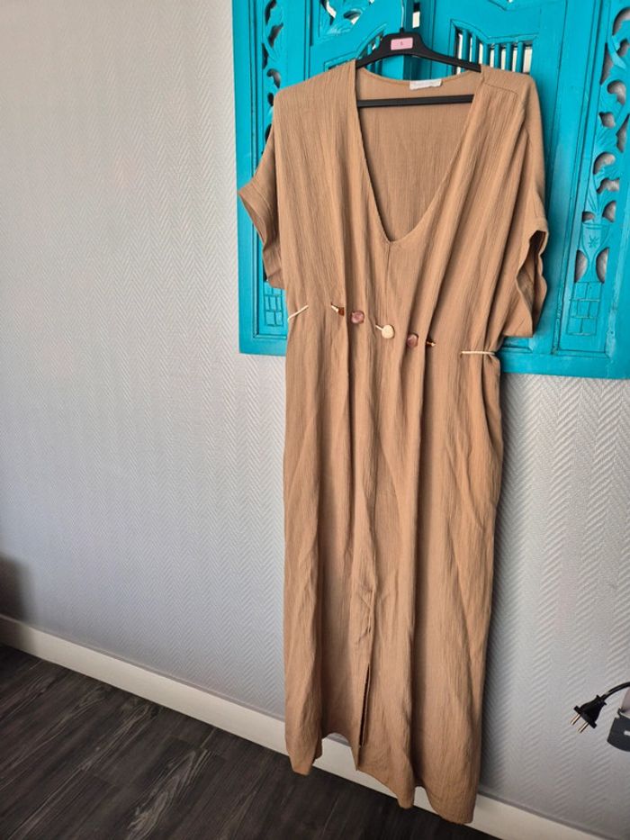 Superbe robe fluide camel effet irisé Made in Italy neuve Robe longue ajustable par sa ceinture galets convient a toute morphologie