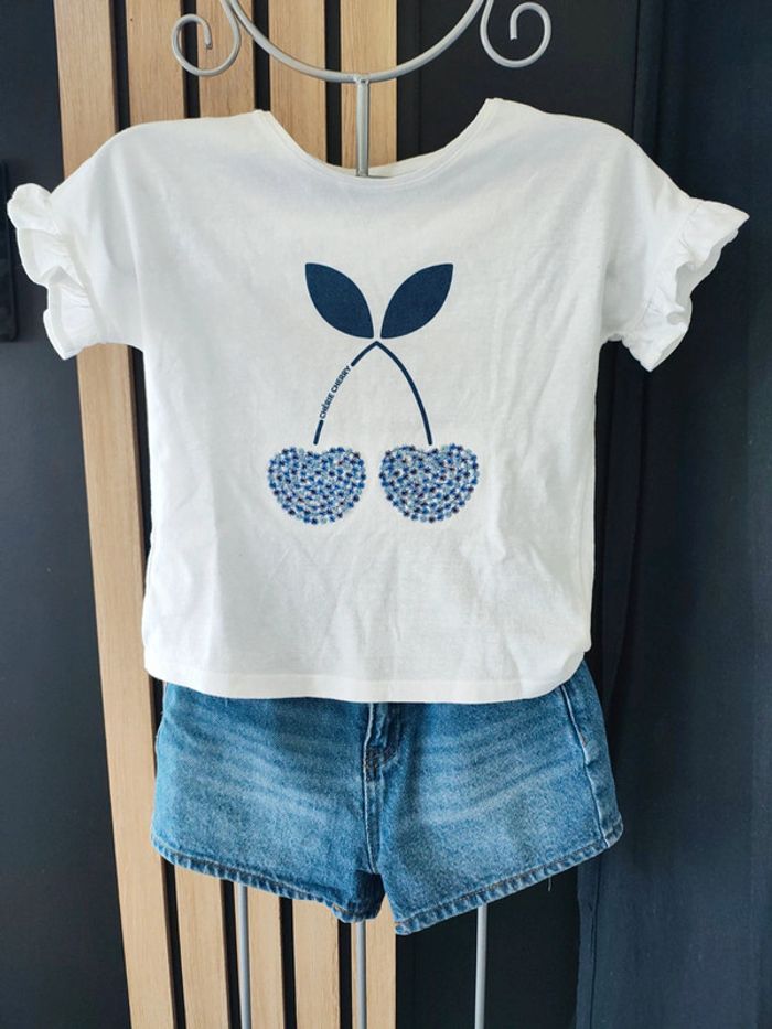 8 ans ensemble été teeshirt Okaïdi et short en jean kiabi