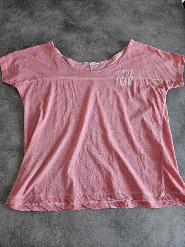 T-shirt à manches courtes Coupe femme Coloris rose pâle Avec écriture "Love team" en blanc Col rond Mesures : - Hauteur : 61cm - Aisselle à aisselle : 54cm - Epaule à épaule : 35cm Marque : Jennyfer Composition : 100% coton Taille : S / 36. Voir mesures Etat : Très bon état Envoi ou remise en main propre Pour voir des annonces similaires : #robotick_manches_courtes #robotick_taille36 #tshirt #tshirtfemme #jennyfer #taille36 #tshirtmoderne