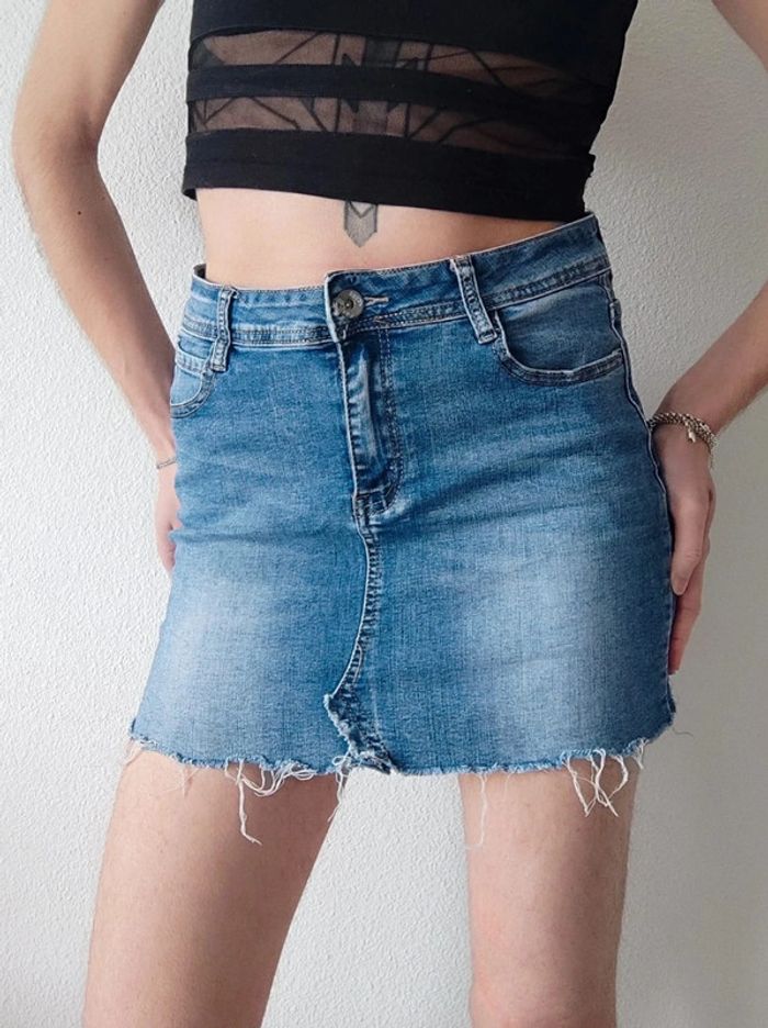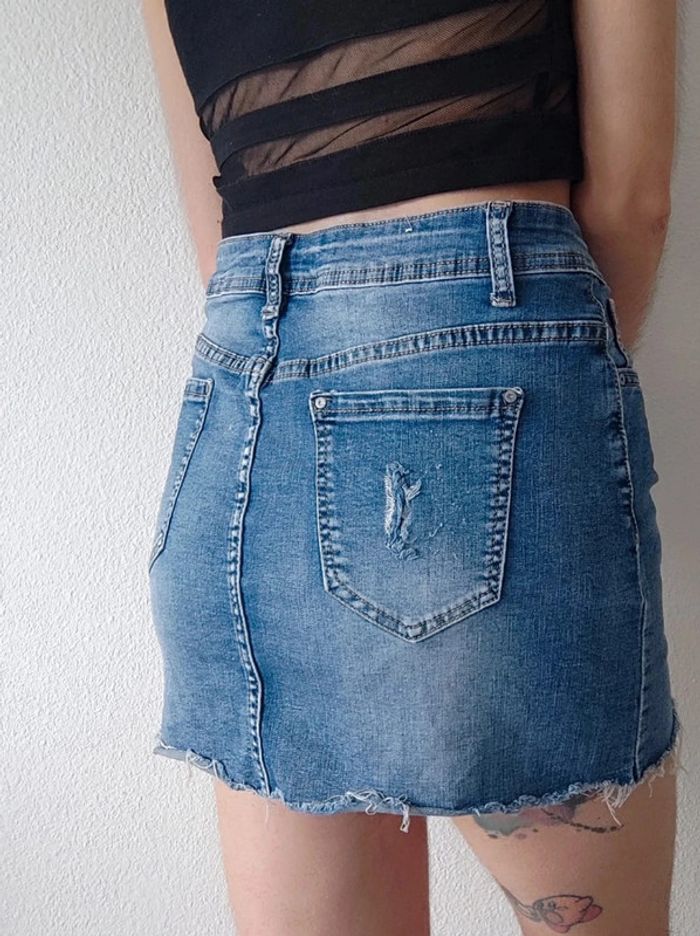 Mini jupe droite jean bleu destroy y2k / Pink & Sky Fashion - 38/M à 40/L - photo numéro 9