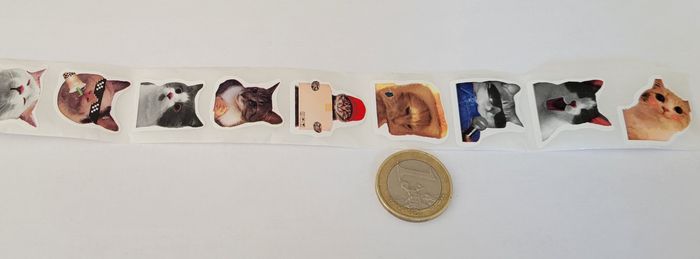 lot de 500 autocollants tete de chat drole Dimensions d'un autocollant : 2 x 2,5 cms. Envoi rapide et soigné