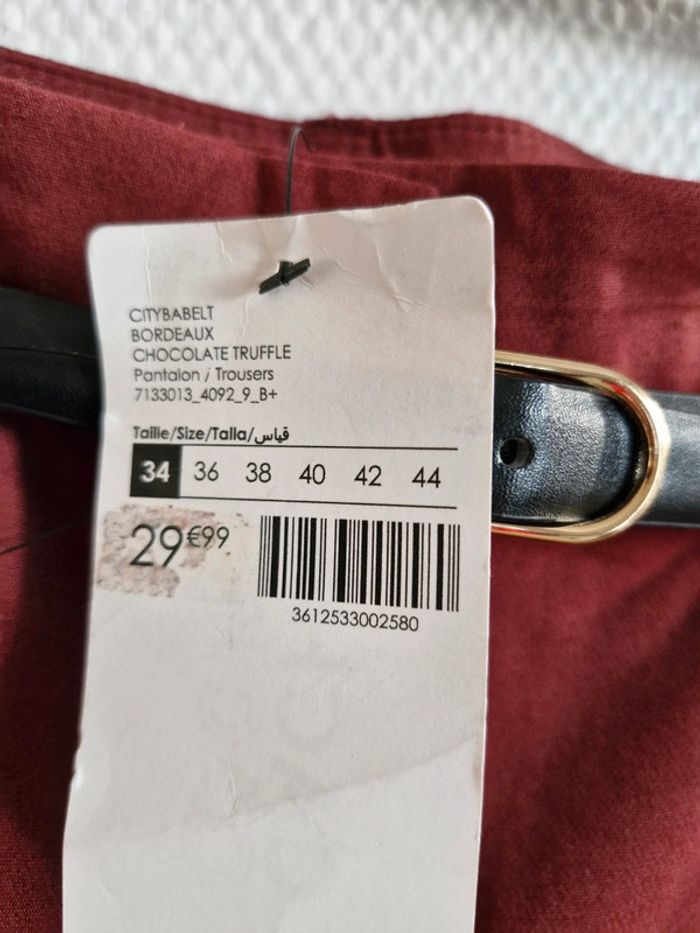 Pantalon neuf avec étiquette, bordeaux, belle matière er coupe, Avec ceinture #albo75017vetementfemme34