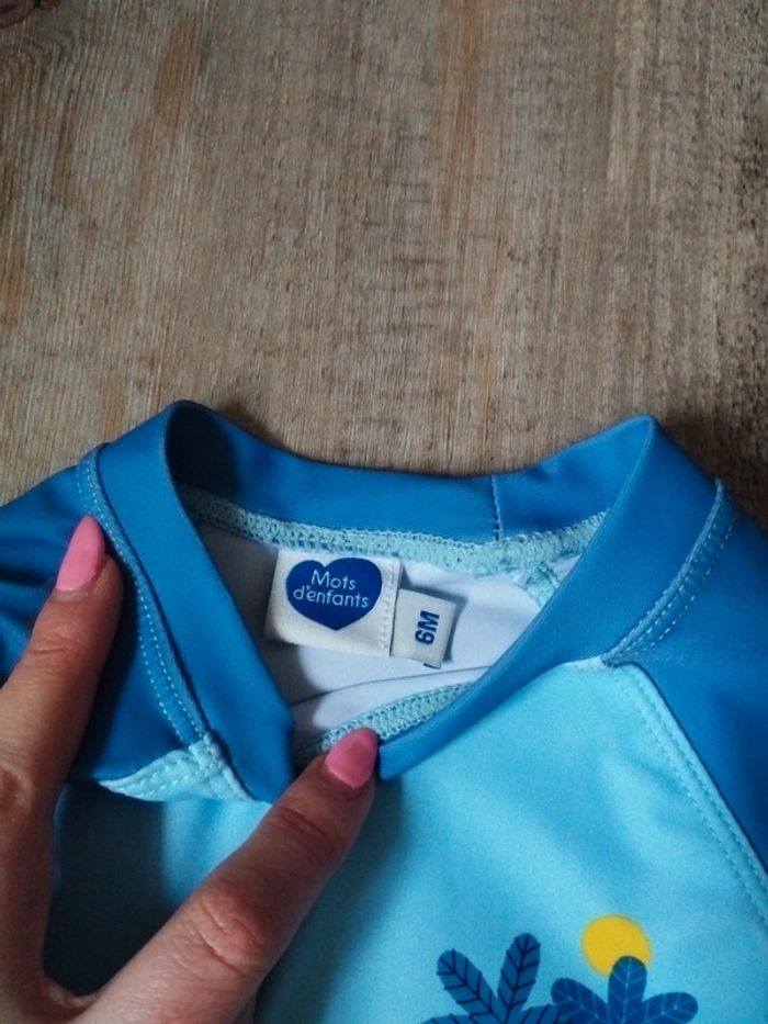 Haut de maillot de bain à manches longues anti-UV Taille 6 mois Mots d'enfants Très bon état (juste un fil tiré voir photo) #mabiquette10garcon6mois