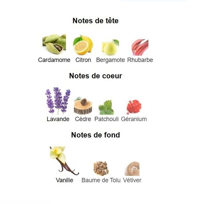 Note de coeur: Lavande, Cèdre, Géranium et Patchouli