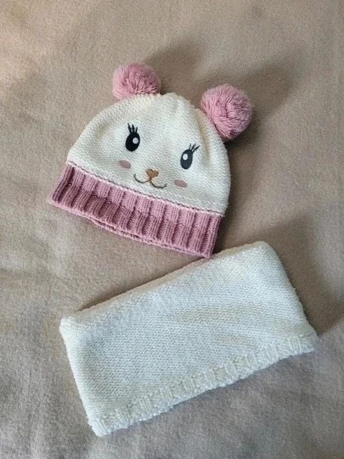 ensemble bonnet et tour de cou kiabi 2 ans en très bon état couleur crème et rose intérieur polaire absence d'étiquette